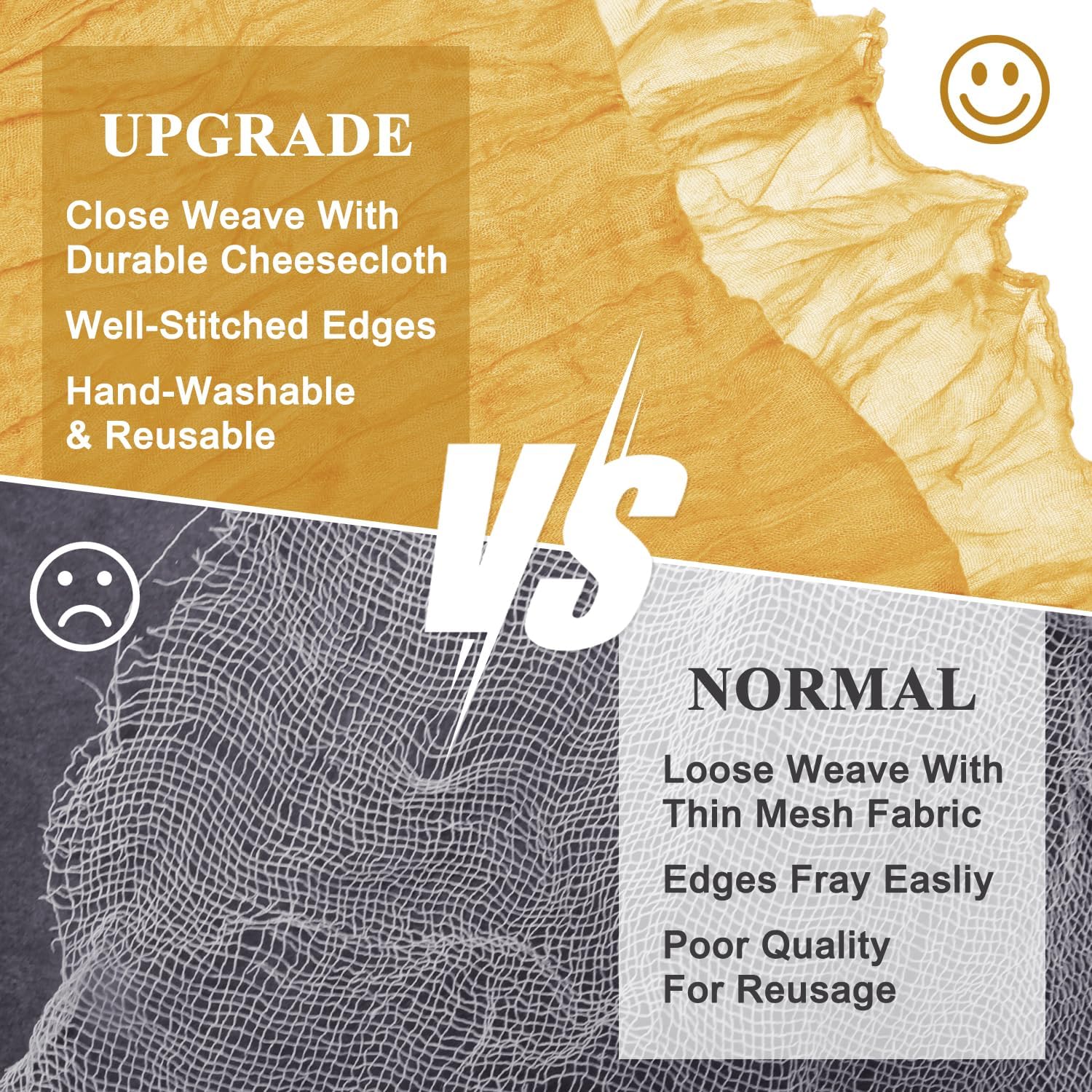 - 【Cheesecloth Table Runner】 Size: 35" W x 120" L. You will get 6 pieces 10FT length cheesecloth table runner. The sheer rustic table runner is long enough to span a large table and drape gracefully across the table. It will gently sway in the wind, adding a romantic atmosphere to your occasion. These eye-catching gauze table runners are ideal for arranging an elegant, stylish tablescape.