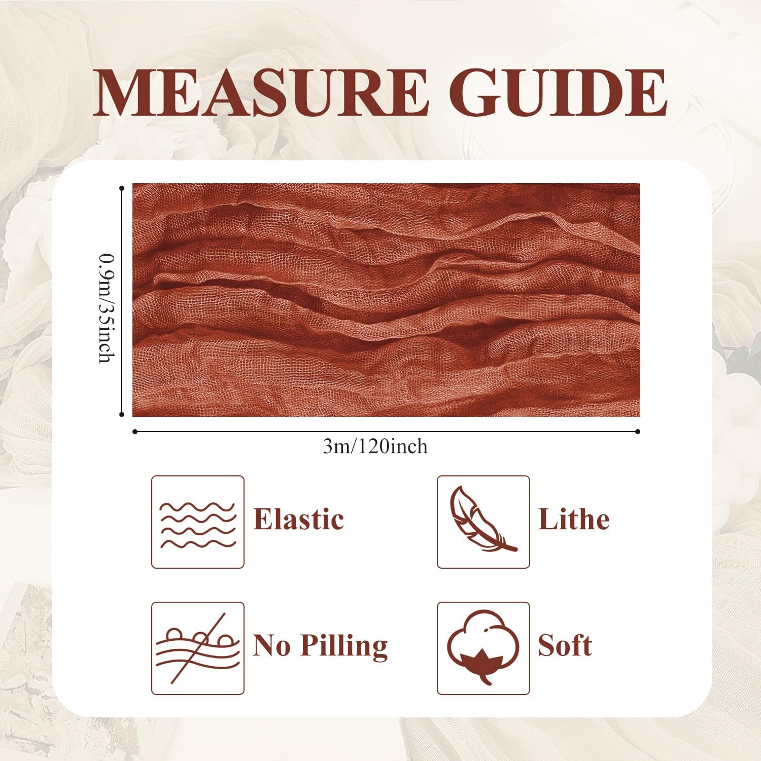 Asee'm 6pcs Cheesecloth Table Runner 120 Inches Long Terracotta Boho Gauze Cheese Cloth Runner 10FT Rustic Sheer Fall Table Runners for Thanksgiving Christmas Wedding Party Baby Shower Decoration