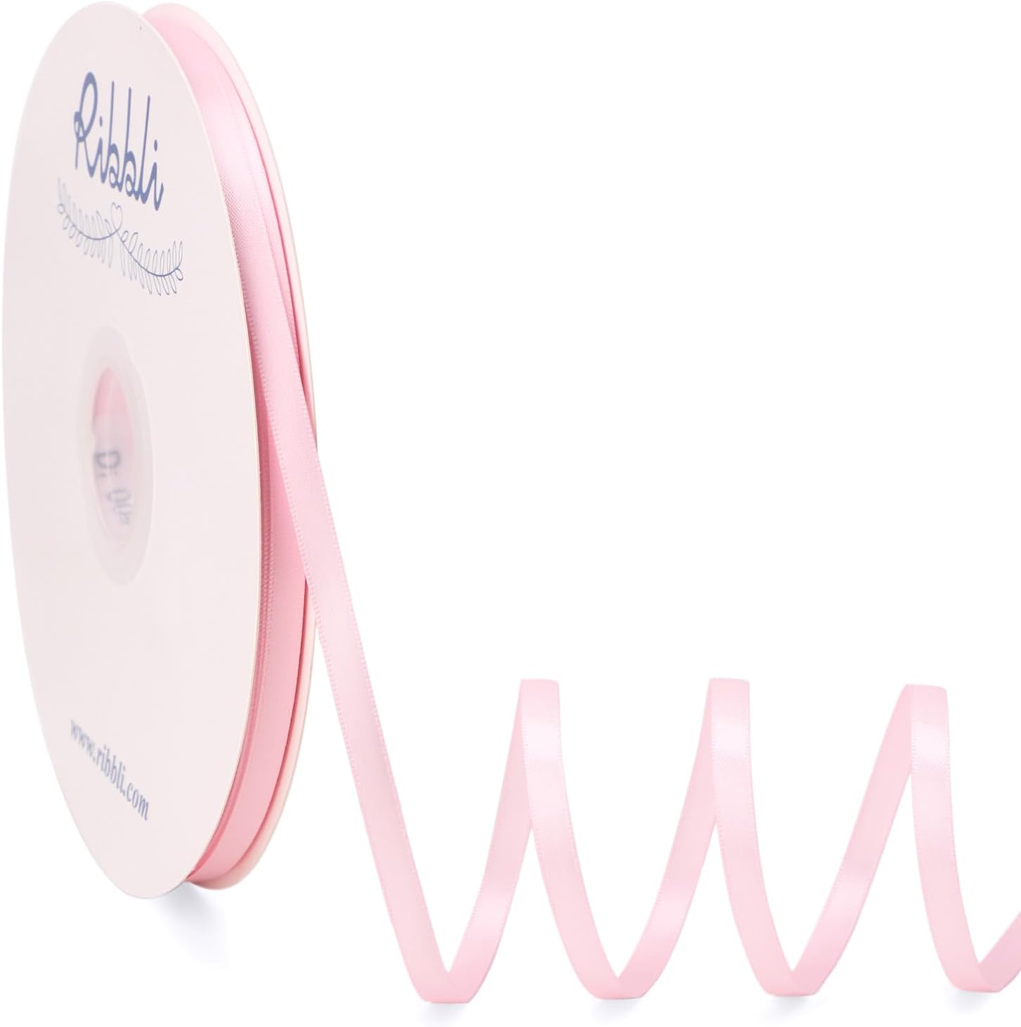 Ribbli Light Pink Satin Ribbon Double Faced Satin 1/4 Inch x Continuous 100 Yards-Baby Pink Ribbon for Gift Wrapping Crafts Wedding Decoration Bows Bouquet Floral Arrangement
