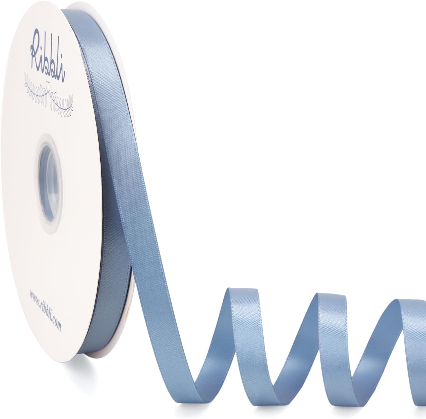 Ribbli Dusty Blue Satin Ribbon Double Faced Satin 1/2 Inch x Continuous 100 Yards-Blue Ribbon for Gift Wrapping Crafts Wedding Decoration Bows Bouquet Floral Arrangement