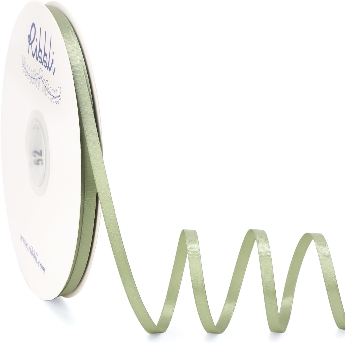 Ribbli Sage Green Satin Ribbon Double Faced Satin 1/4 Inch x Continuous 100 Yards-Spring Moss Ribbon for Gift Wrapping Crafts Wedding Decoration Bows Bouquet Floral Arrangement