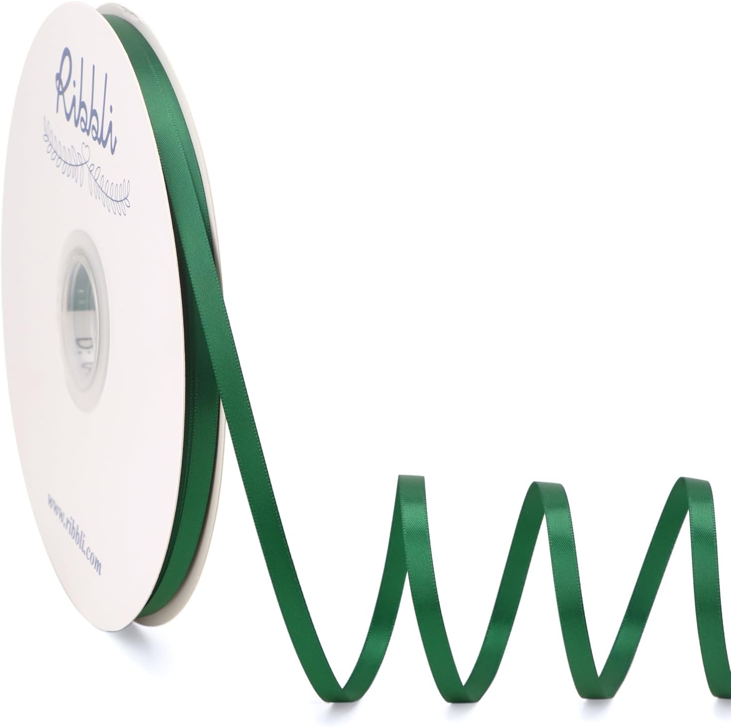 Ribbli Forest Green Satin Ribbon Double Faced Satin 1/4 Inch x Continuous 100 Yards-Green Ribbon for Gift Wrapping Crafts Wedding Decoration Bows Bouquet Floral Arrangement