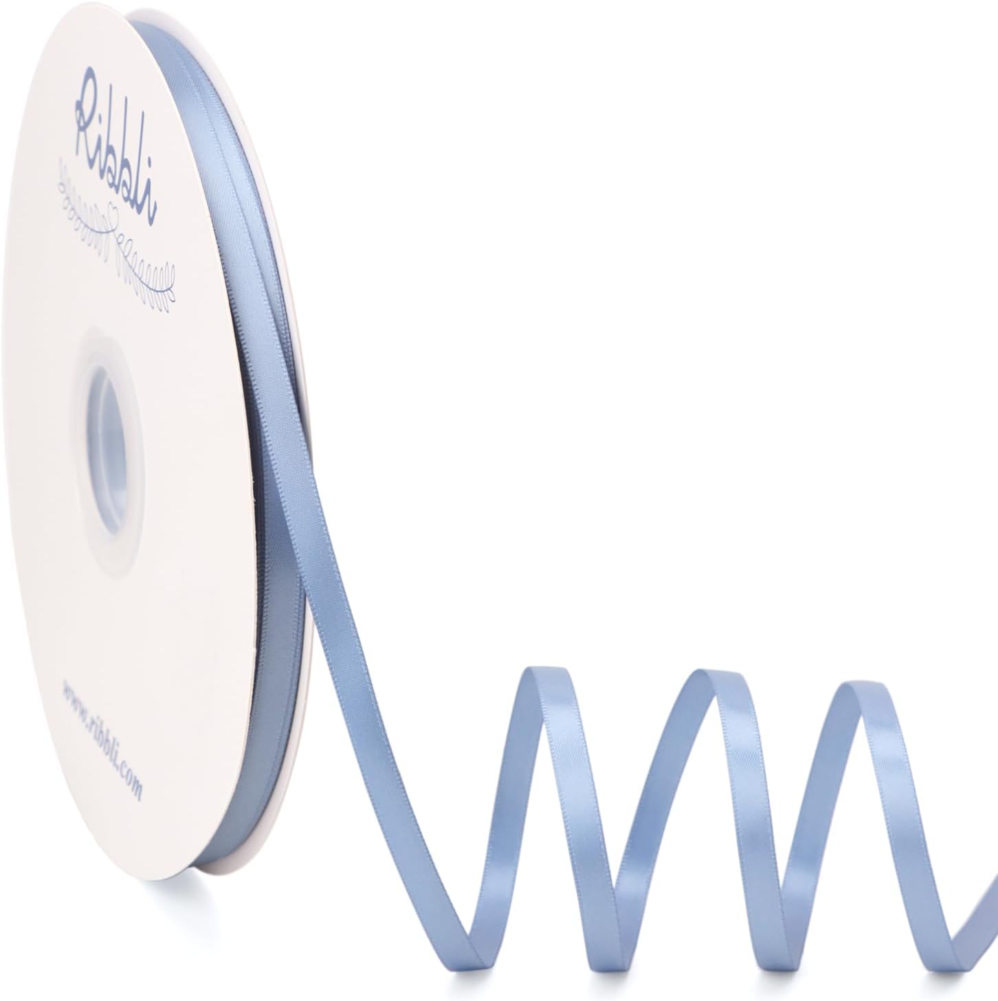 Ribbli Dusty Blue Satin Ribbon Double Faced Satin 1/4 Inch x Continuous 100 Yards-Blue Ribbon for Gift Wrapping Crafts Wedding Decoration Bows Bouquet Floral Arrangement