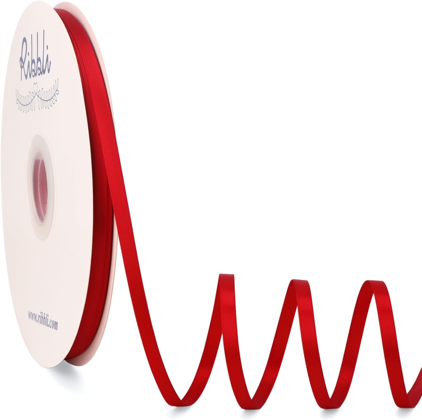 Ribbli Red Satin Ribbon Double Faced Satin 1/4 Inch x Continuous 100 Yards-Red Ribbon for Gift Wrapping Crafts Wedding Decoration Bows Bouquet Floral Arrangement