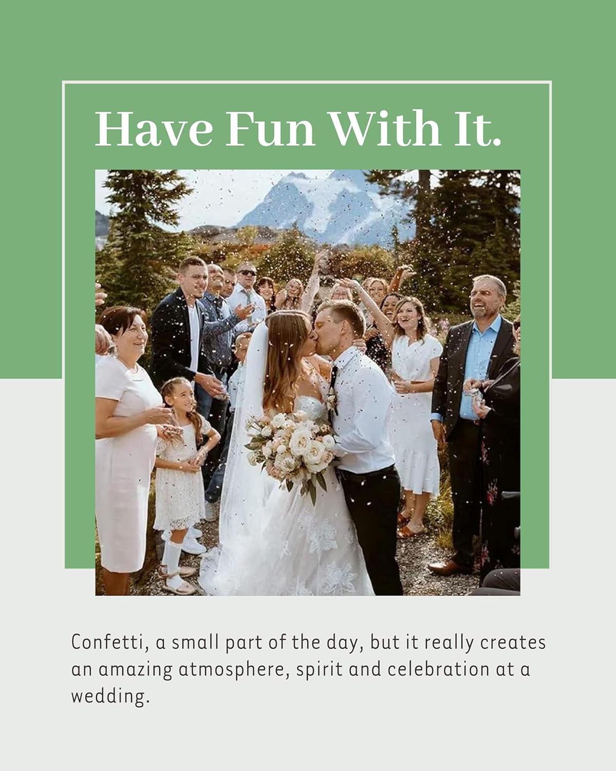 - CAPTURE THE MAGICAL, INSTAGRAM-WORTHY MOMENTS WITH BEAUTIFUL RAINBOWPANA PRE-PACKAGED DRIED FLOWER CONFETTI: One of the most cherished traditions at weddings is the joyful throwing of confetti or flower petals to celebrate the newlyweds. With our all-natural, eco-friendly dried flower confetti, you can add a burst of color to your Wedding Album, TikTok, Facebook and Instagram feed. Every picture tells a story, let yours be vibrant, joyful, and eco-friendly.