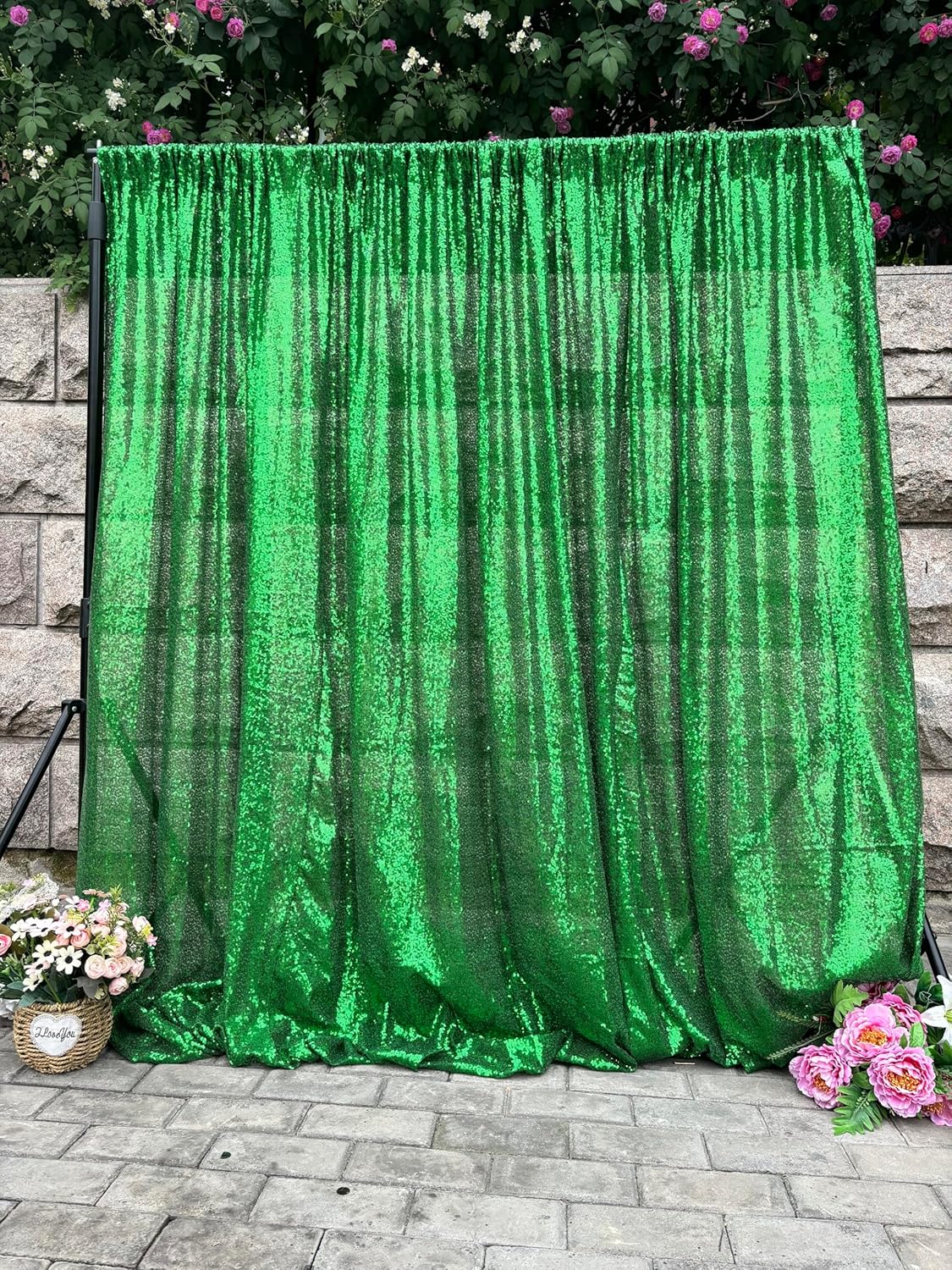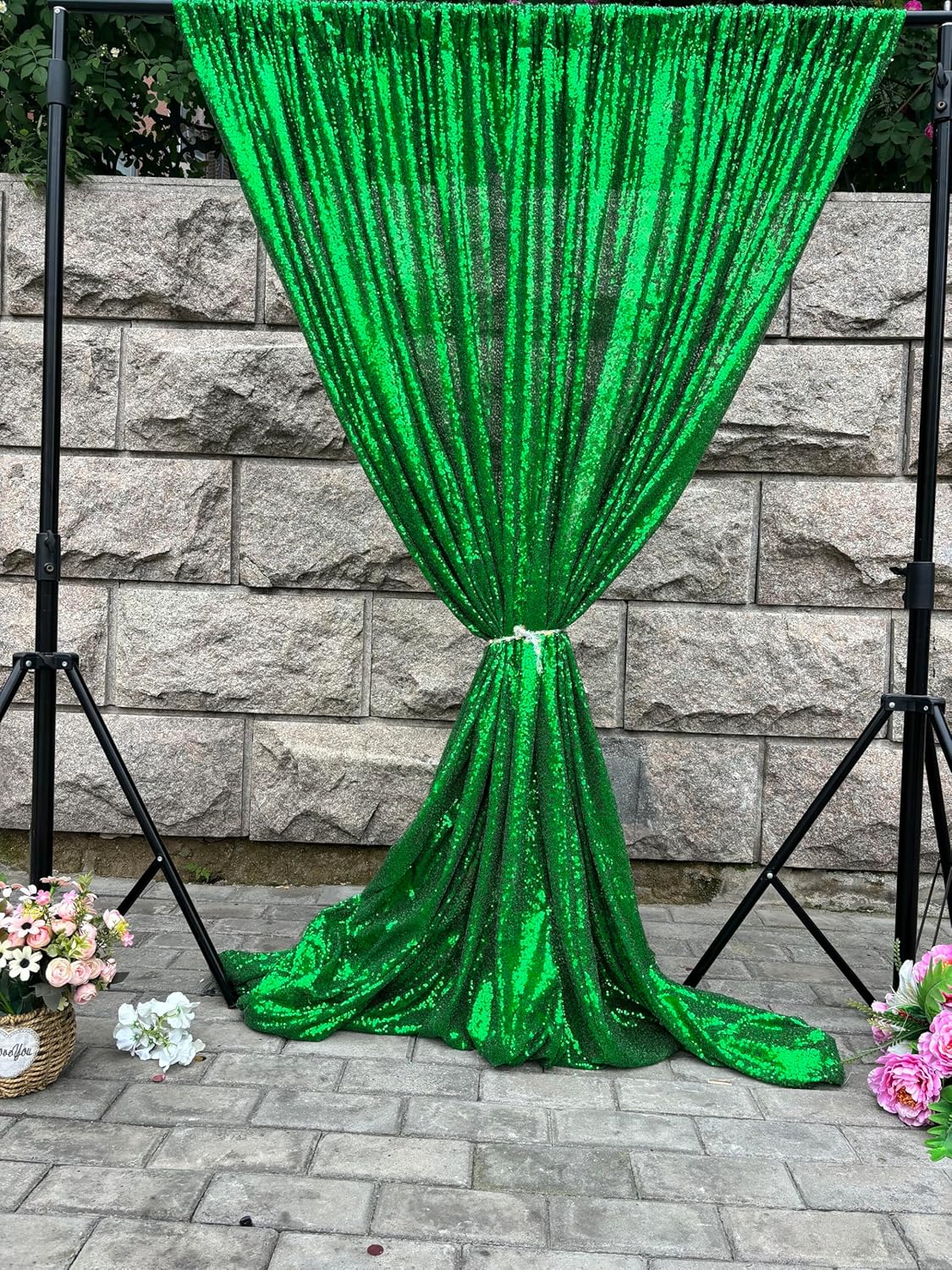 Green Sequin Backdrop Curtains 1 Panel 10FTx10FT Glitter Green Photo Backdrop Party Wedding Baby Shower Curtain Sparkle Photography Background