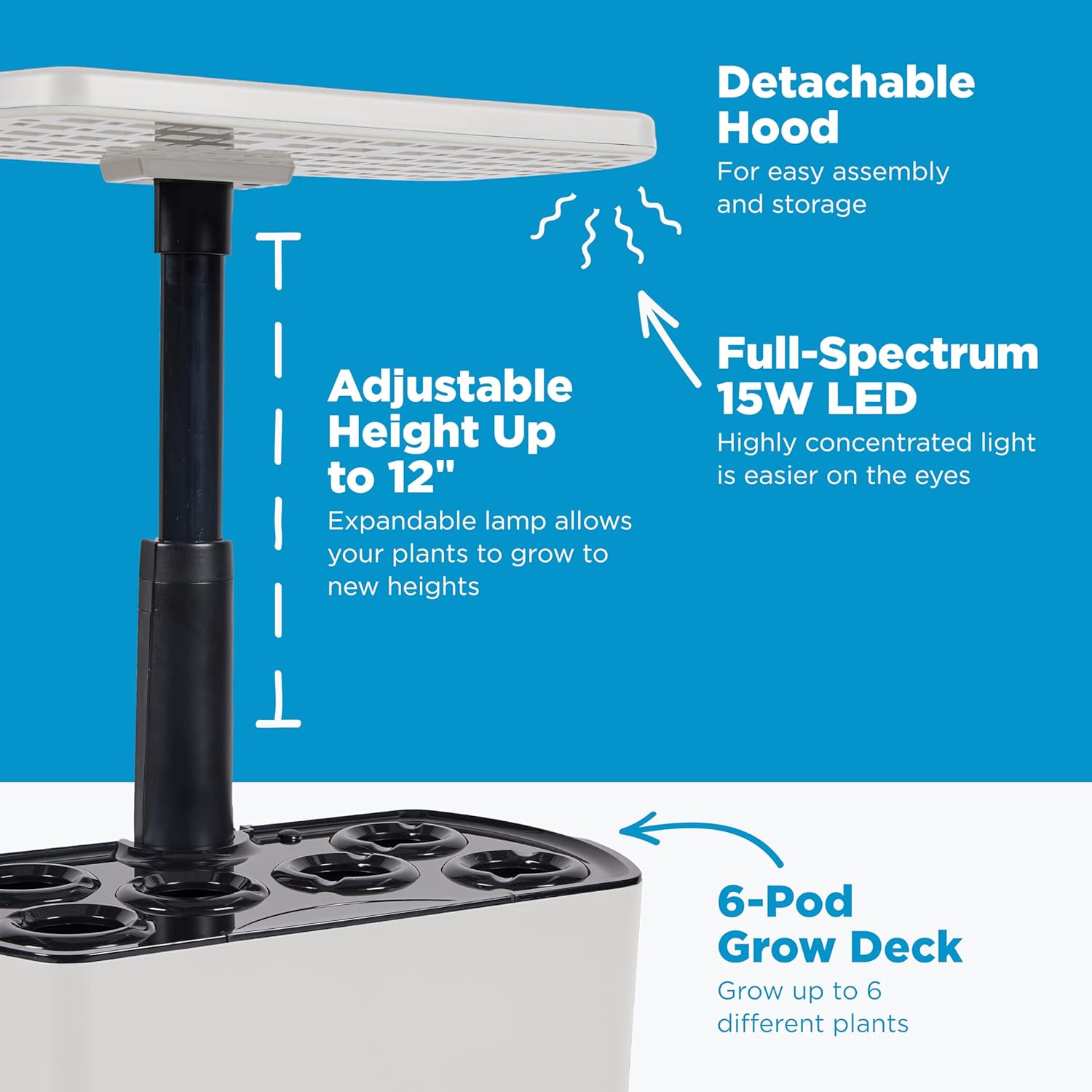 - ROOM FOR 6 PLANTS: This countertop garden features an optimized grow deck so you can grow 6 different vegetables, herbs, and flower, all up to 12 inches tall