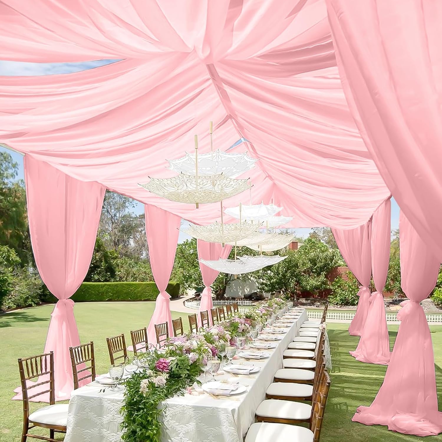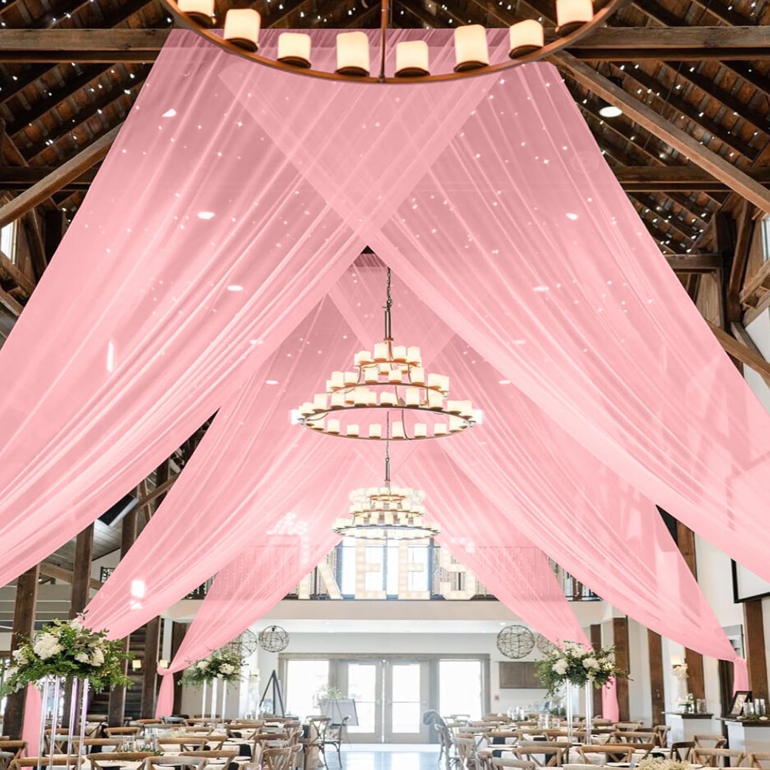 - 🌷【Wedding Ceiling Curtain Widely Used】Wedding drapery ceiling can match well with many decorations, perfect for weddings ceiling, stages, receptions, parties, bridal and baby showers, birthdays, engagement, candy buffets, dessert tables, photography, ceremony and more. The sheer curtain can not only decorate the ceiling but also your arches, backdrop, curtains, chandeliers and so on.