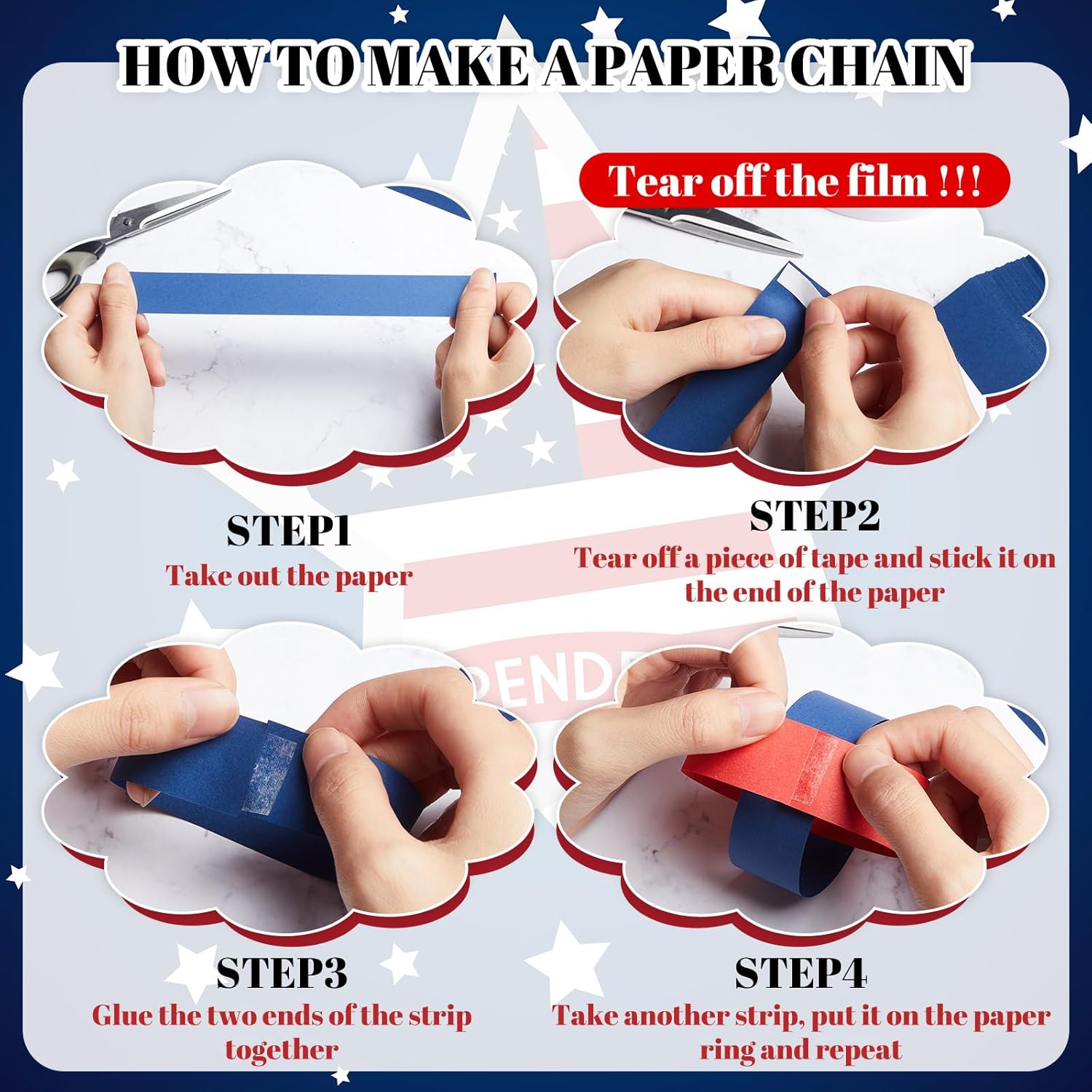 Lincia 600 Sheet Halloween Paper Chain Garland, Construction DIY Crafts Chain Strip for Fall Thanksgiving Party Decor, 1x8 Inch with Double Sided Tape (Independence Day)
