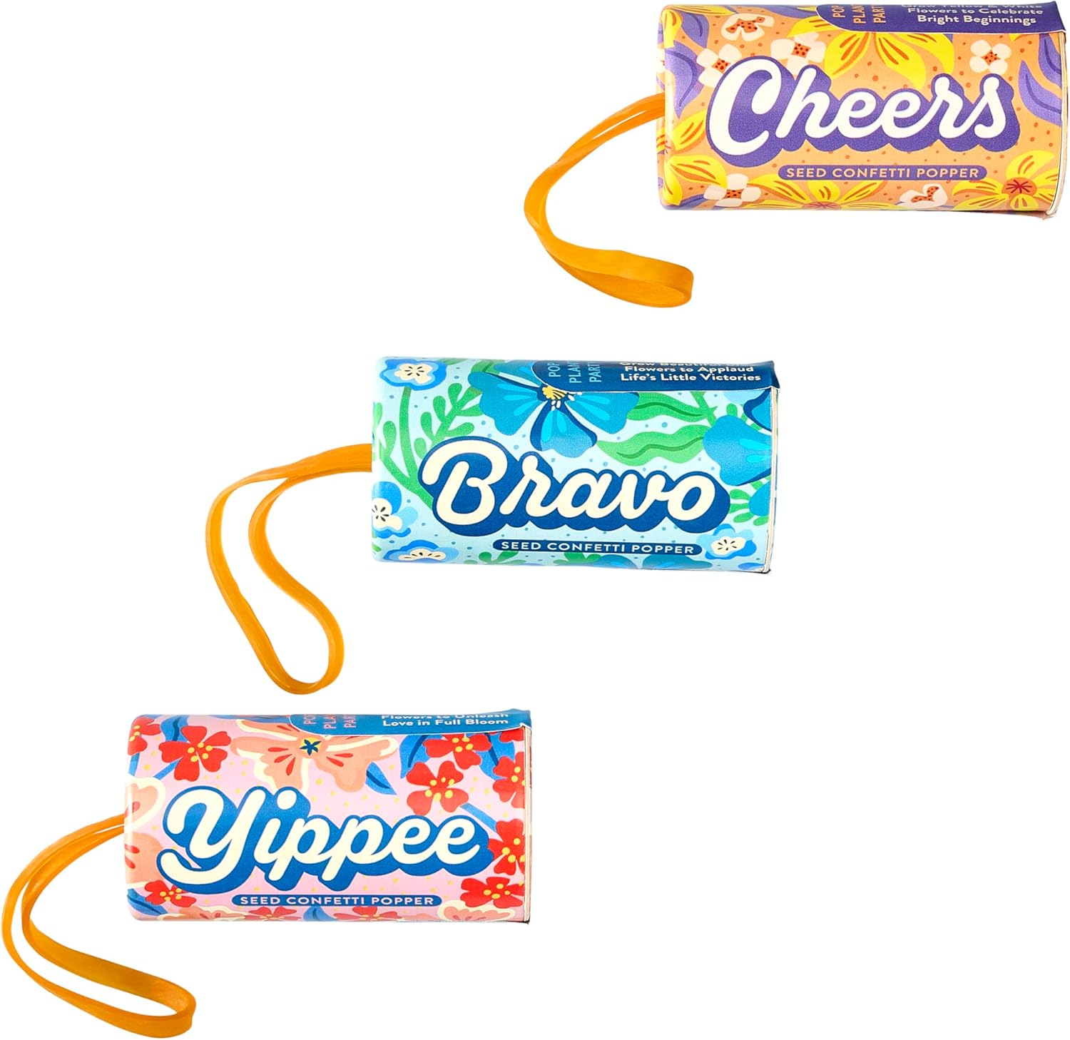 - Celebrate & Grow Flowers: Turn any celebration into a blooming memory with our confetti poppers; Each popper is filled with vibrant seed paper confetti embedded with flower seeds, creating a fun way to celebrate and a lasting way to plant; Simply remove the cap, Angle away, pull band back by 7-10" and release to pop; Pop in a location with full sun after the final frost and water regularly; The refillable popper tube design makes it easy to reuse - refills sold separately