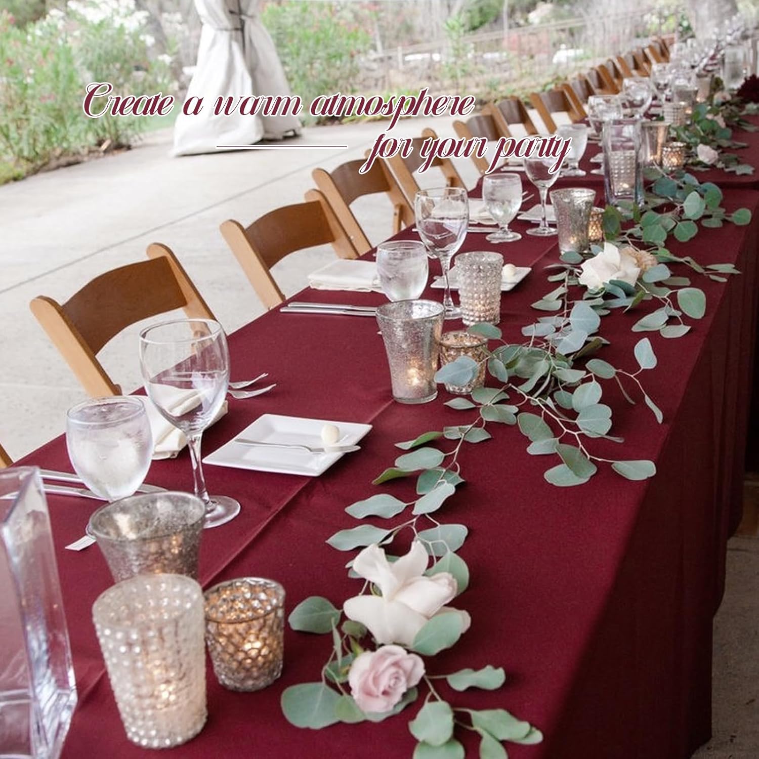 - 👍【 Package Include】You will receive 12 packs of 60x102 Inch burgundy rectangle polyester tablecloths, perfect for standard 6ft table, providing 15 inch drop. The product comes individually packaged in a re-sealable storage bag. Burgundy tablecover is more luxurious, classic and gracious, ideal for both formal & casual settings and makes a great gift for all occasions. Protect your table from scratch,stains and sun rays while decorate your table. Quality of 12 packs is sufficient for your needs.