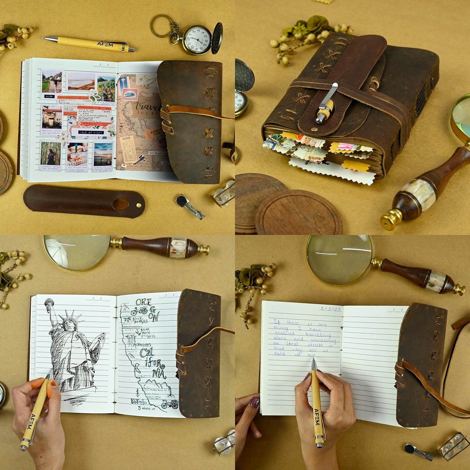 - MANY USES - Vintage Leather Journal Can be used as a Leather gifts for men and women, Leather Book, Prayer journal, travel journal, leather scrapbook, grimoire, drawing journal or sketching book and compact for carrying in your bag. Ideal for alternative Artist Sketchbooks, Photo Album, Traveling Notes, Business Executive, Logbook, travellers notebook, Journalists, Food Planner, vintage decor.