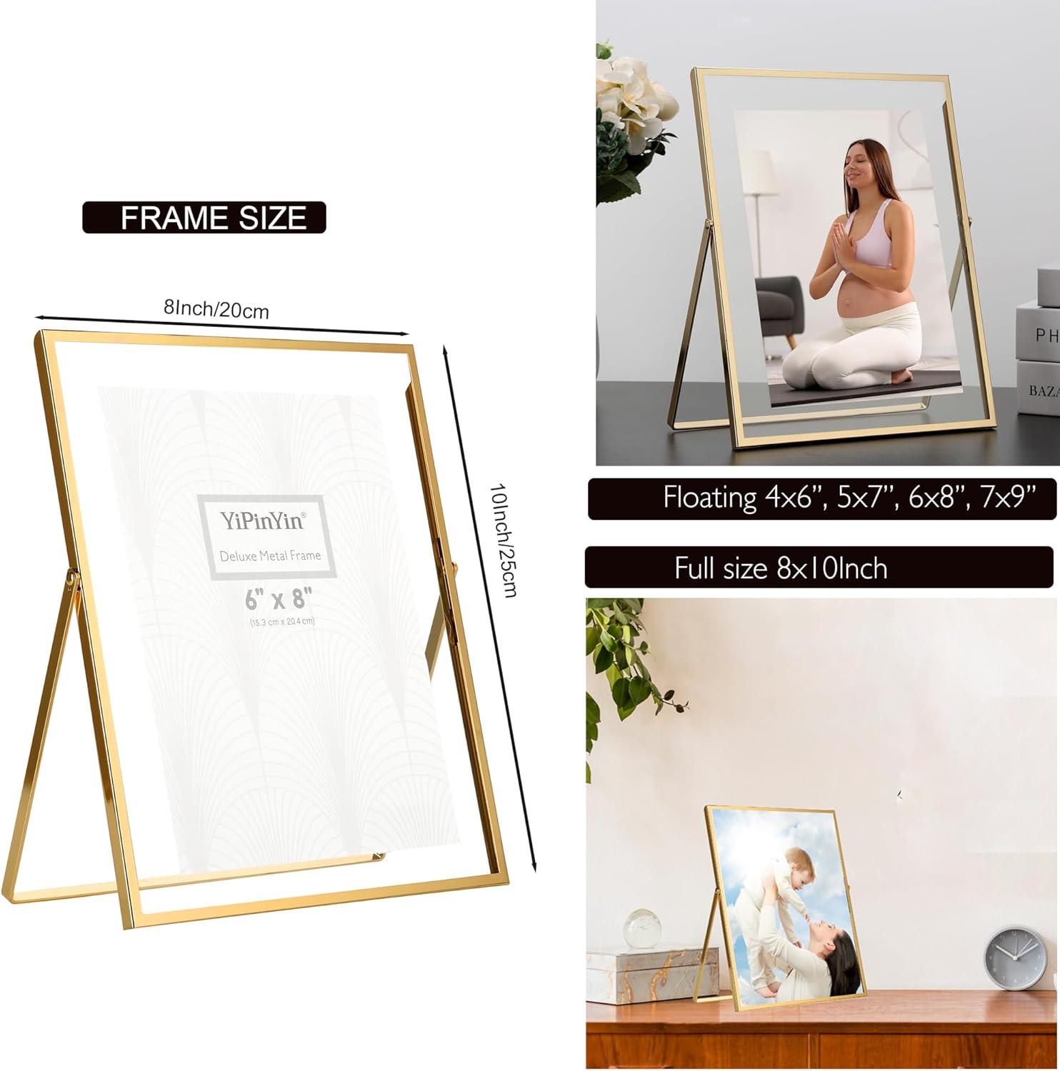 - 【Luxury Floating Viewing Frame 】YiPinYin Picture frame made of a gold metal frame and 2 pieces of transparent glass, making it looks very simple and elegant, with a light luxury style. The 8x10'' frame dispaly photo has a floating effect for size 5x7'', 6x8'' or 7x9'''' or Full size to 10x8''.