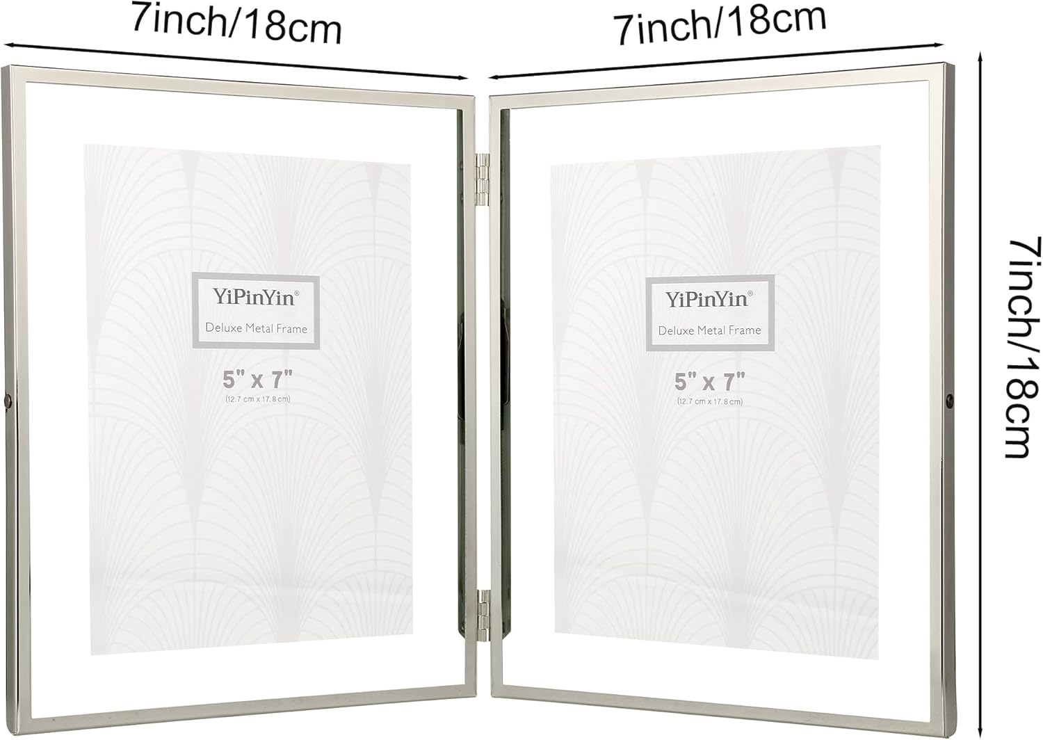- 【Luxury Floating Viewing Frame 】YiPinYin Silver Double Picture frame 7x9'' made of a gold metal and 2 pieces of transparent glass, making it looks very simple and elegant, with a light luxury style. Display 5x7'', 6x8'' by floating effect or full size 7x9'' photo.