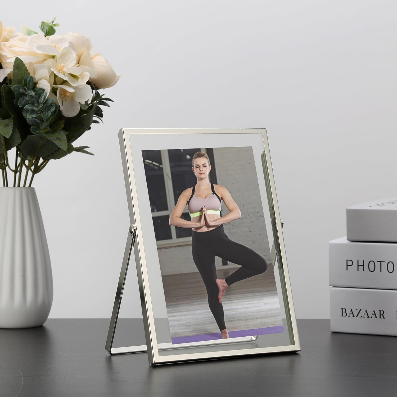 - 【Luxury Floating Viewing Frame 】5x7'' Silver Picture frame made of a metal frame and 2 pieces of transparent glass, making it looks very simple and elegant, with a light luxury style. Display 3.5x5'', 4x6'' photo by floating effect or display sull size 5x7'' photo