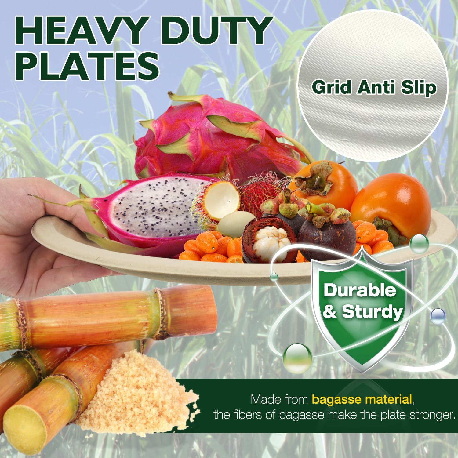 - 【Healthy Living】: Embrace a healthier lifestyle with sustainable sugar cane fiber paper plates. Not only do these plates replace traditional dinner plates, they are also completely recyclable. No worries about washing dishes.