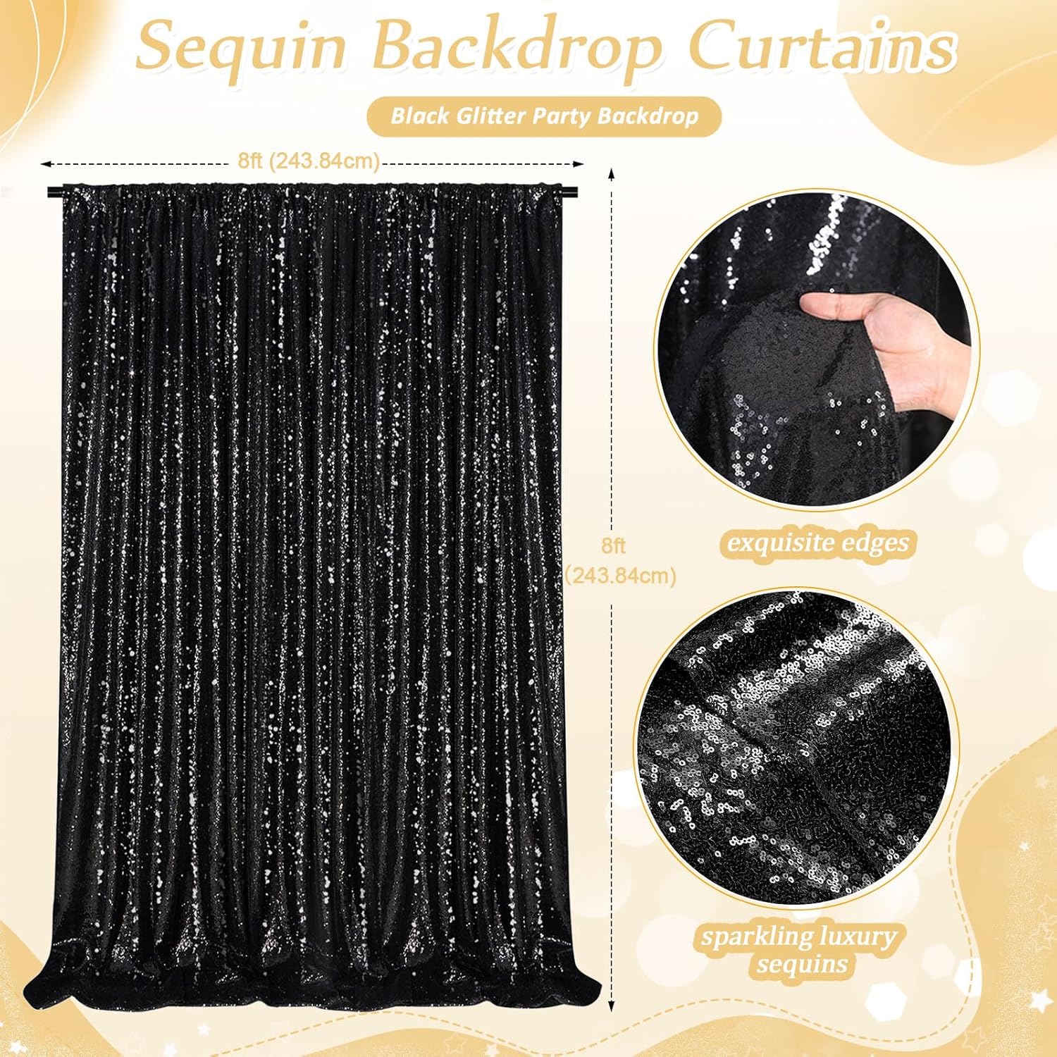 Black Sequin Backdrop 8ft x 8ft Glitter Photo Booth Black Backdrop Curtains