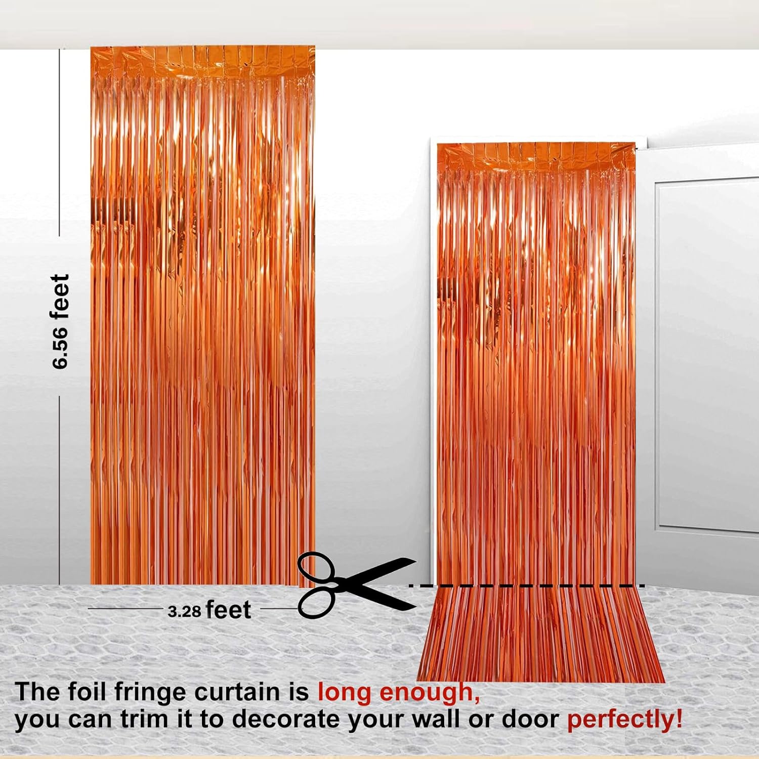 2 Pack 3.28 ft x 6.56 ft Orange Tinsel Curtain Party Backdrop Decorations, Metallic Foil Fringe Backdrop Door for Halloween, Christmas, Birthday Graduation Wedding Party Streamers Photo Backdrop.