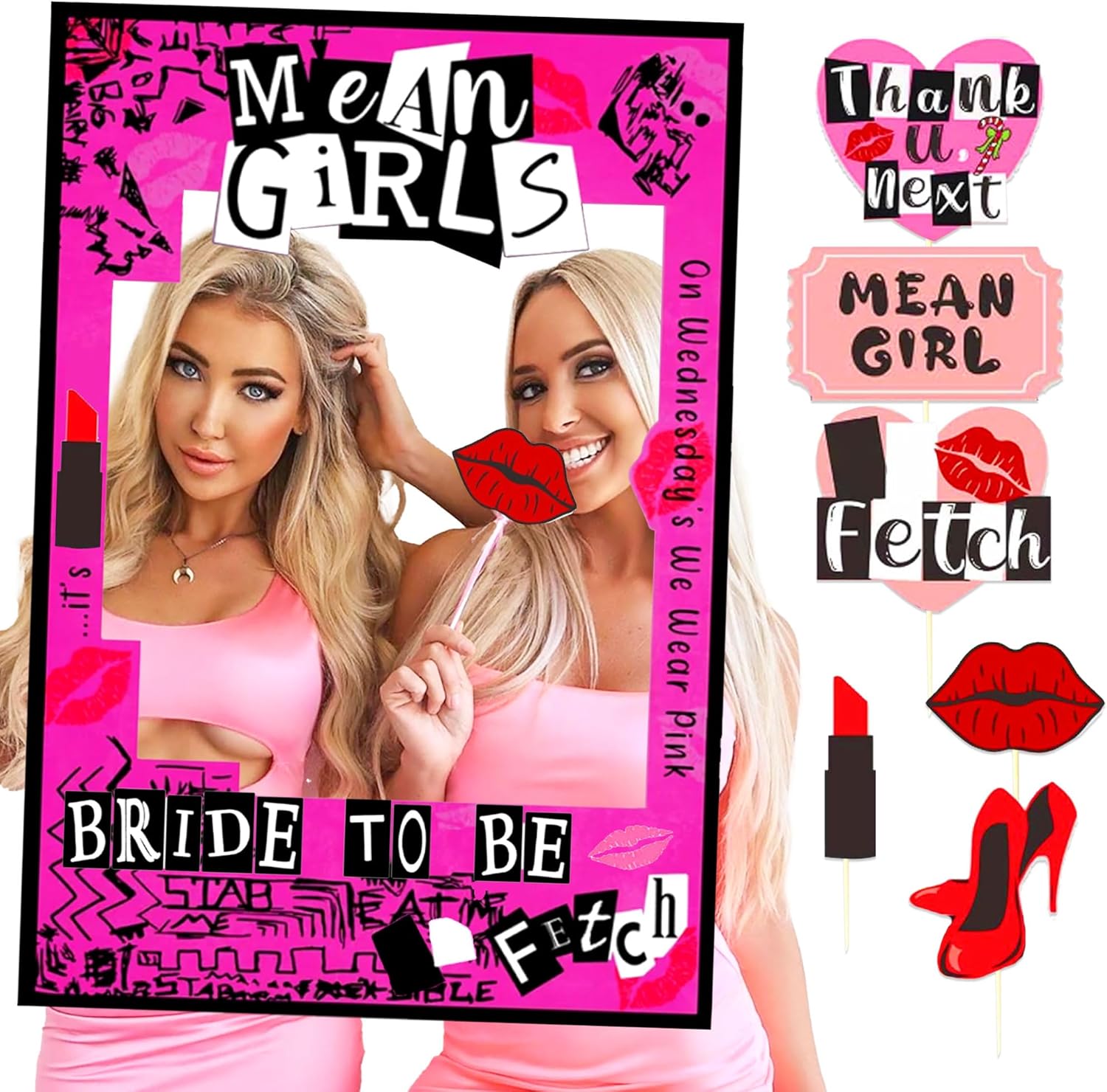 - Do you want to have a different kind of unforgettable party? 1PC 27 x 19 inch Mean Girls photo booth frame and 7pcs girl photo booth props.Through simple assembly, good idea to the most cherished one, feel the most unforgettable bridesmaid's shower and enjoy this moving moment together.