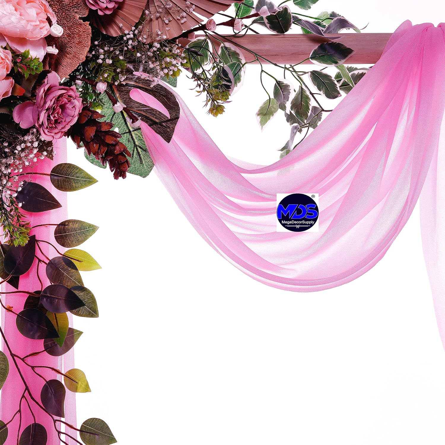 - CONTAINS : Pack of 2 PCS. Each panel is 30 Inch (Wide) x 75 Feet (Long). Thermal cutting no seaming technique. Seamless, one-piece design. Each panel is cut entirely from one single piece of fabric. It is perfect length for arch either round or rectangle for a elegant puddle drop. Soft and overhanging pendants make the wedding decorations more popular.This chiffon drapery backdrop can help your party to create a warm and elegant scenes.