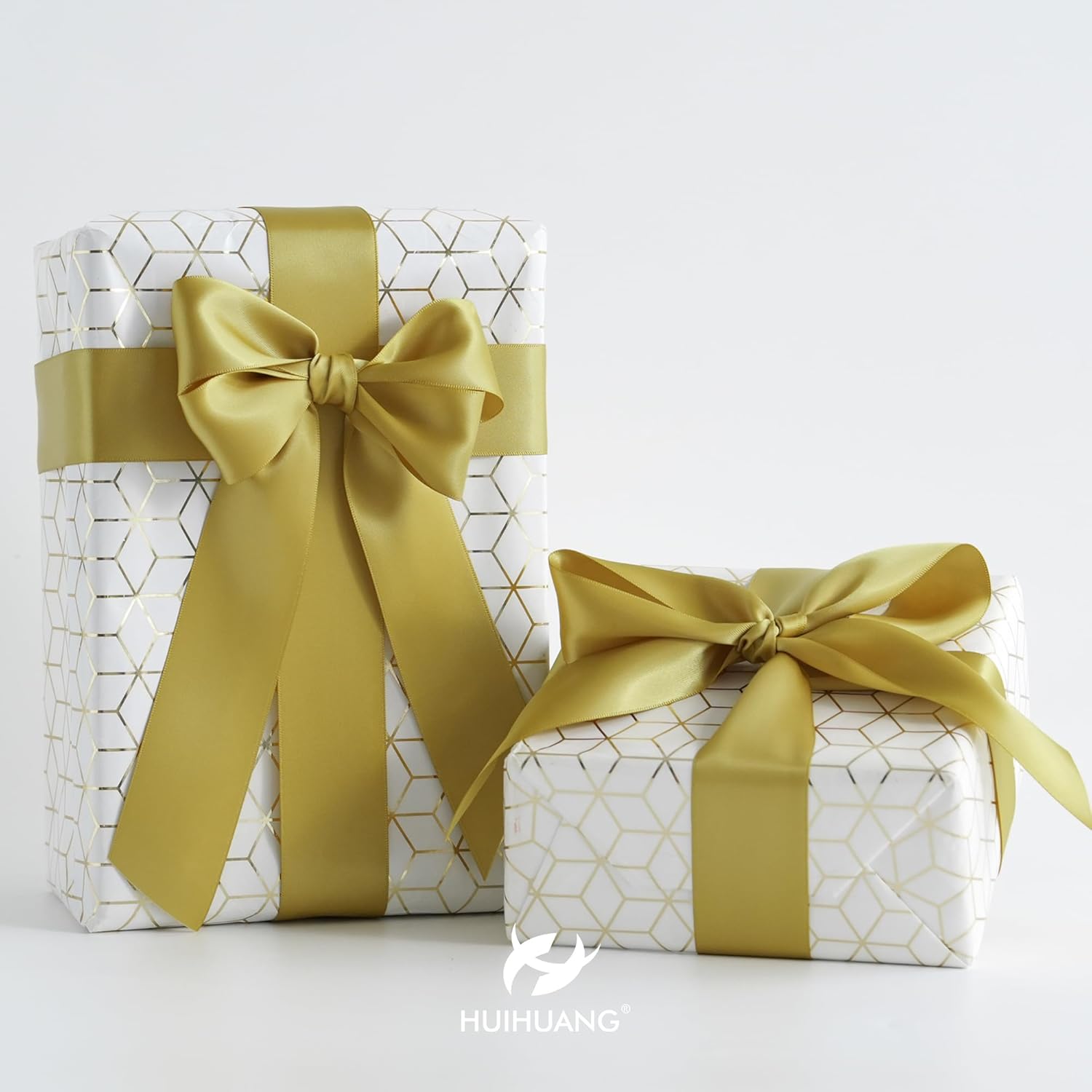 HUIHUANG Gold Satin Ribbon 1-1/2 inch x 50 Yards Dijon Gold Double-Faced Satin Ribbon for Gift Wrapping, Bows, Flower Bouquet, Crafts, Bridal Shower Wedding Decor, Christmas Tree