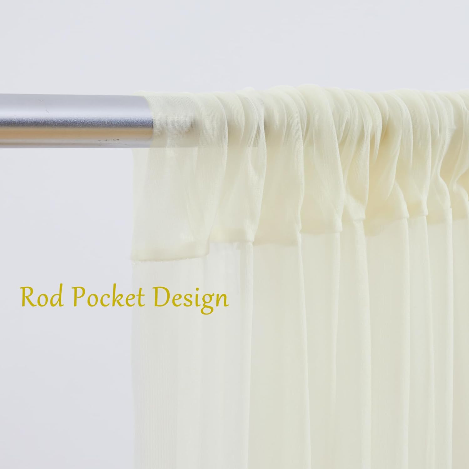 - BACKDROP CURTAINS DESIGN: Soft and airy sheer backdrop helps the eye focus on your party, wedding or photography shooting. The ivory backdrop curtain has a 3.5 inches rod pocket at the top, which can easily hang on a pipe and drape system or arch backdrop stand. When not in use, simply store flat for convenient storage that doesnโt require much space at all