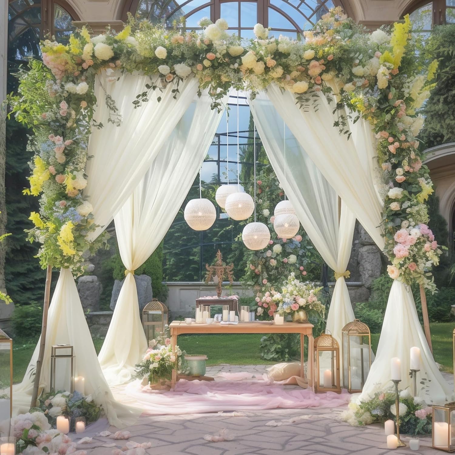 - MULTIPLE USE SHEERS: Our Ivory sheer backdrop curtain is a fresh and simple way to transform any room into an elegant setting. The sheer fabric drapes easily, giving you the option of covering your entire wall . Can be used as canopy bed curtains, voile curtain, room divider, sheer window curtains, and wall covering fabric, if you love the sheerness of this curtain backdrop