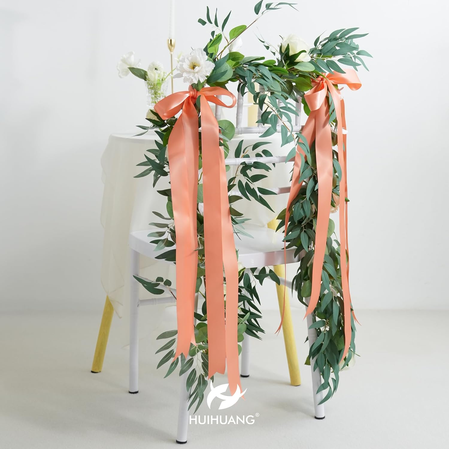 HUIHUANG Peach Satin Ribbon 1-1/2 inch x 50 Yards Peach Color Double-Faced Satin Ribbon for Gift Wrapping, Bows, Flower Bouquet, Eternal Roses, Crafts, Bridal Shower Wedding Decor