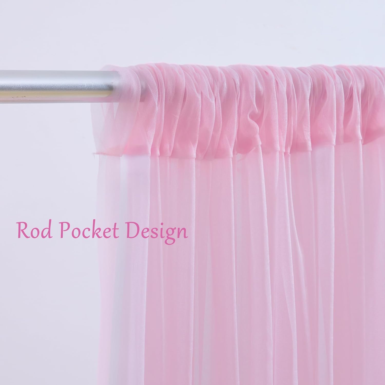 - SHEER BACKDROP CURTAINS: Our pink tulle backdrop curtain is perfect for making a background backdrop to a sweets table or for a photo area when decorating a party. Used as backdrop curtains for parties and baby shower decorations along with balloons and fairy light or wrapped around the wedding arch
