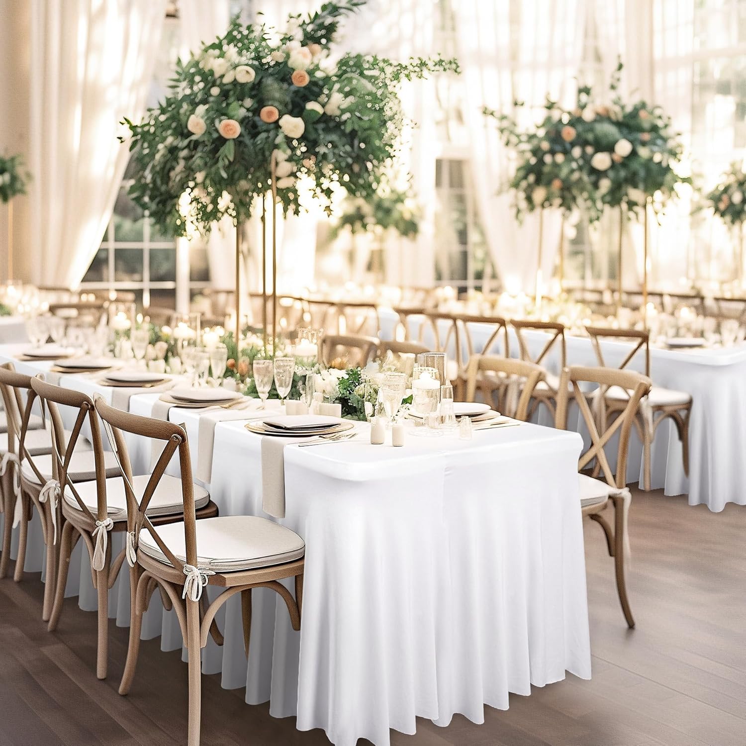 - 【Fitted Tablecloth Package】- 6 Pieces spandex table covers. Material: High Quality Wrinkle Free and Stretchy Fabric. Color: White. Size: 96"L X 30"W X 29"H. Fitted for 8 foot rectangle tables. Change your table into a new look in few seconds with our tablecloths