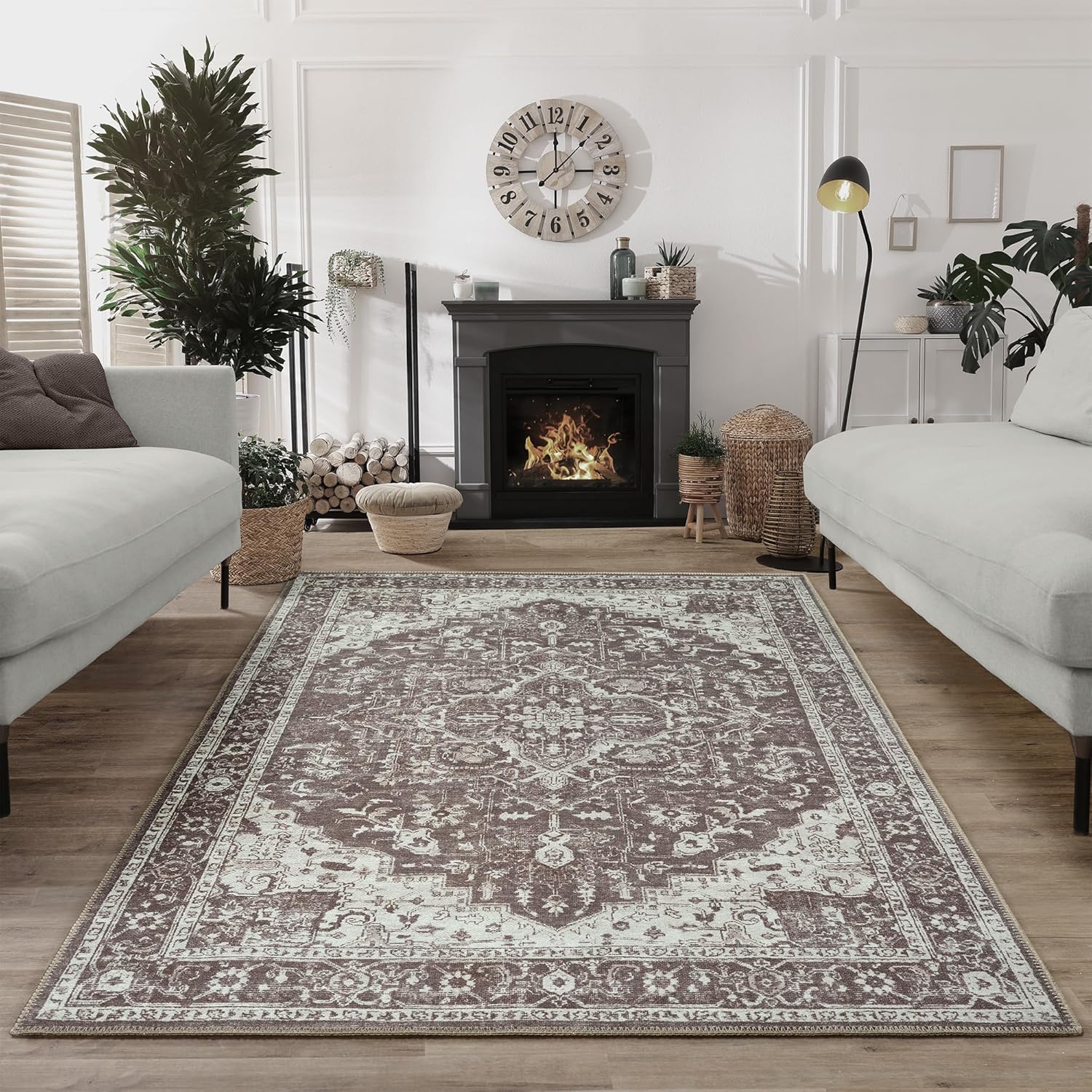 Bloom Rugs Washable Non-Slip 5' x 7' Rug - Dark Brown Traditional Medallion Area Rug for Living Room, Bedroom, Dining Room, and Kitchen - Exact Size: 5' x 7'