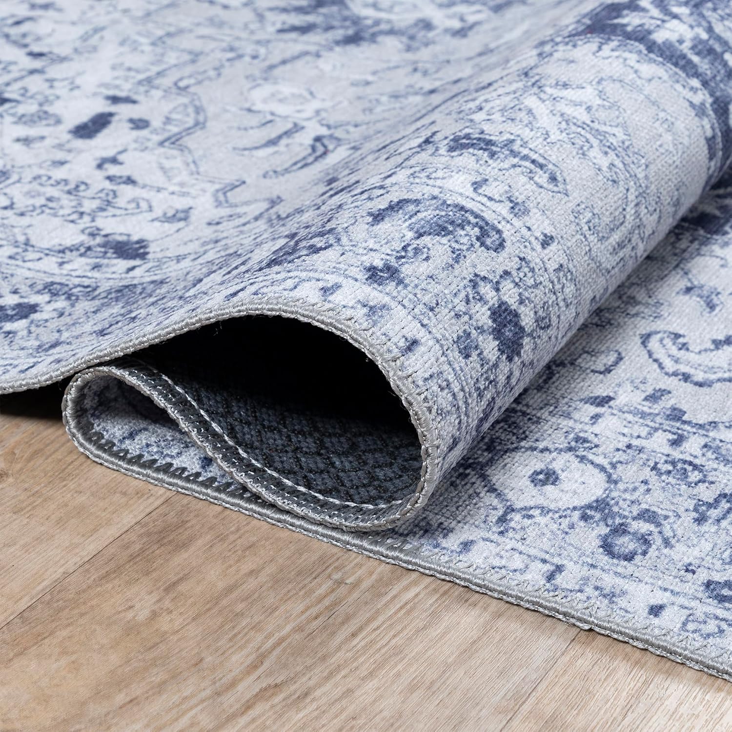 Bloom Rugs Washable Non-Slip 8' x 10' Rug - Gray/Blue Traditional Medallion Area Rug for Living Room, Bedroom, Dining Room, and Kitchen - Exact Size: 8' x 10'
