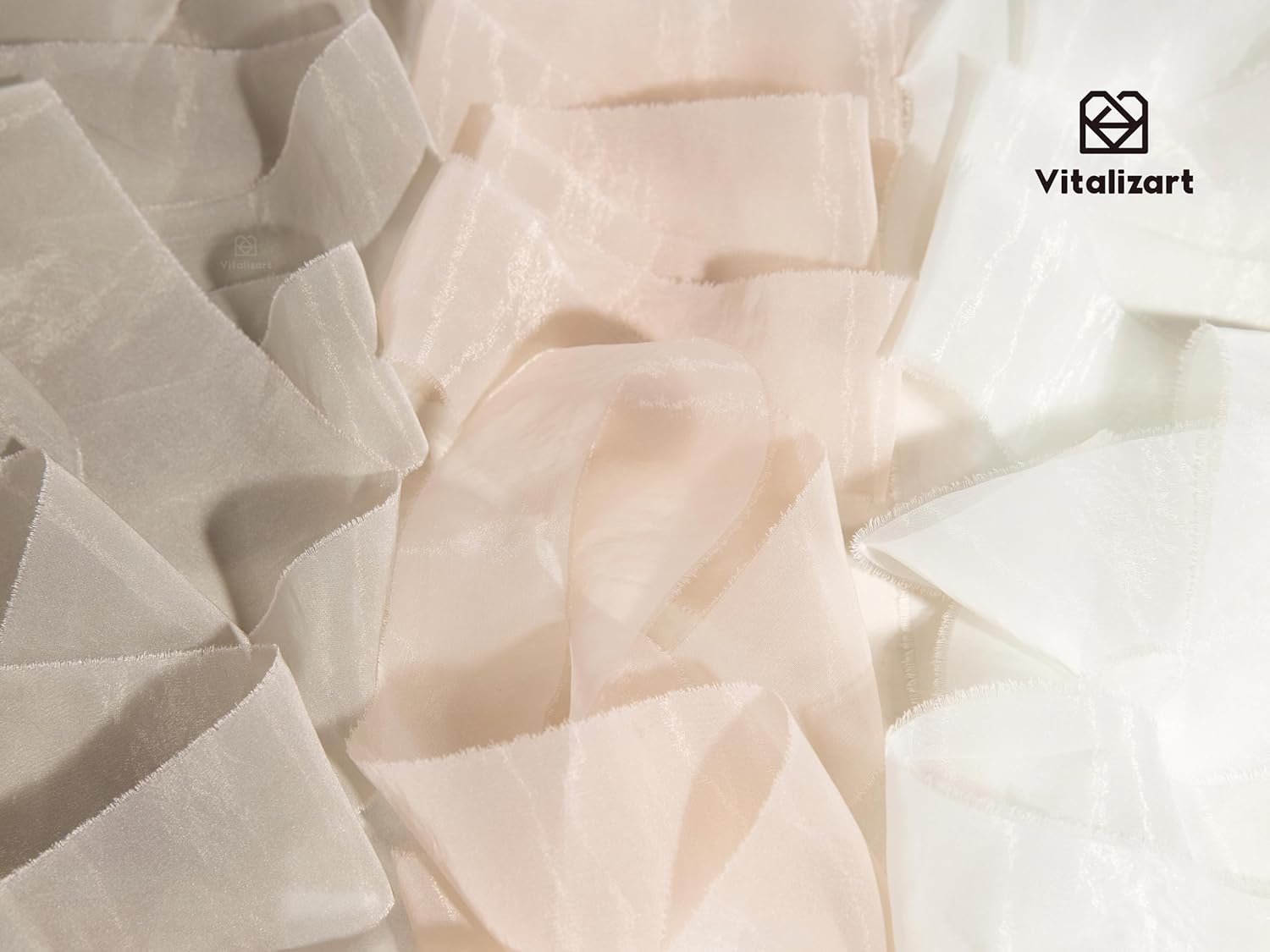 Vitalizart Organza Ribbon Frayed Sheer Organza White Pink Grey Set 1.5" Silk Like Ribbons for Valentines Day Gift Wrapping Craft Flower Bouquet Wedding Invitations Mesh Fabric 15 Yards
