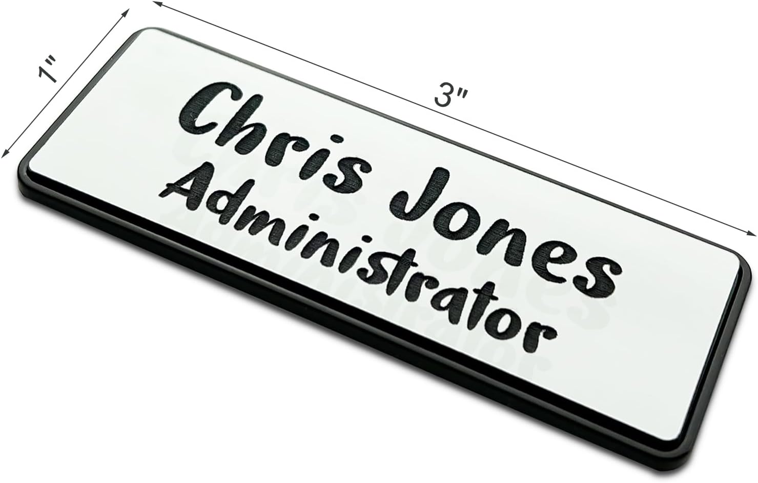 Custom Engraved Name Tag ID Badges Personalized Identification with Pin or Magnetic Clip Adhesive Backing (1" x 3")