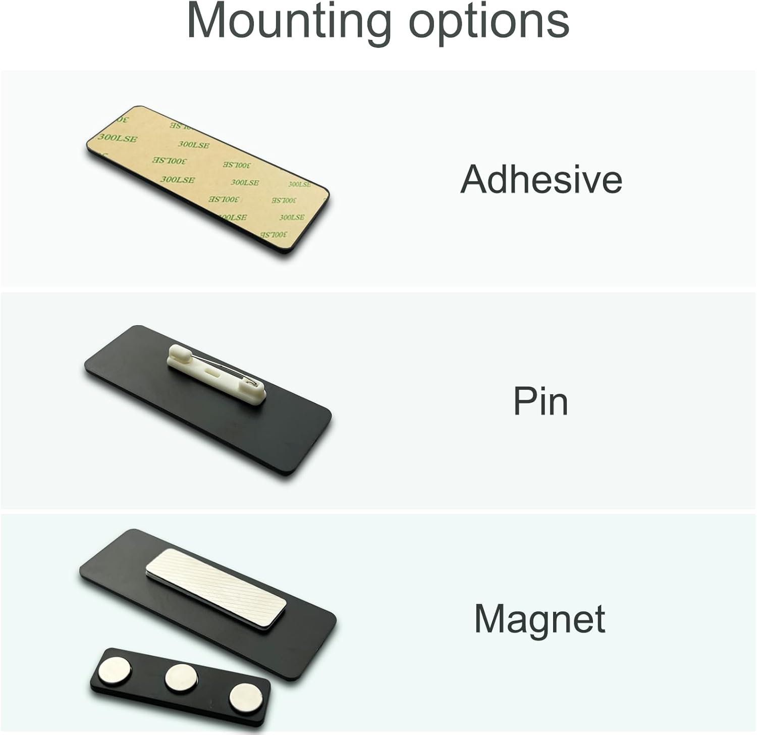- 【Diverse Colors & Backings】There are 8 different colors and 1"-3"or 1.5"-3" , different fonts which fit the style of your brand or business perfectly. Each badge with pin, magnetic, adhesive backing