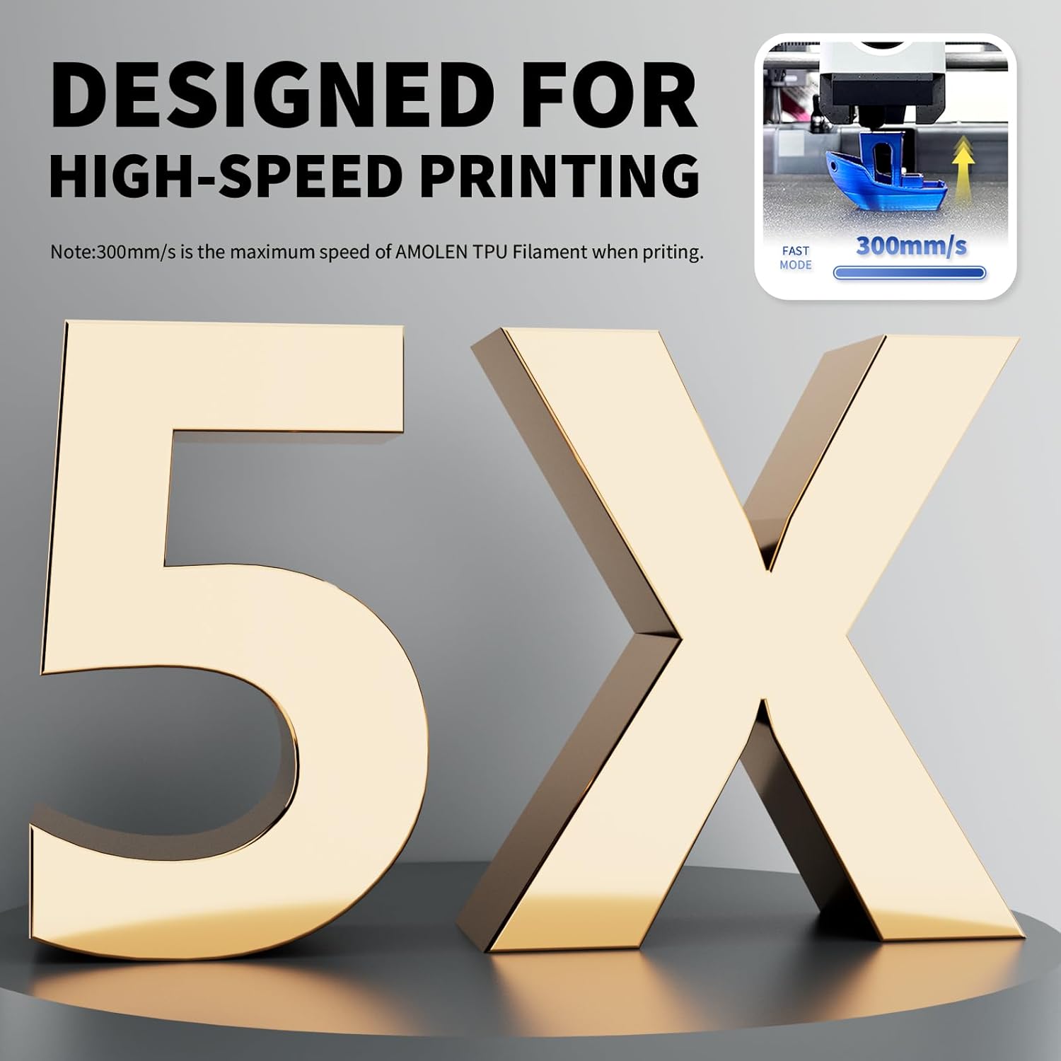 - AMOLEN TPU filament is made from high-quality thermoplastic polyurethane (TPU) that allows for repeated movement or impact without cracking. Resistant to oil, grease, and abrasion. Supports high-speed printing to save more time for your creativity. Let your imagination run wild