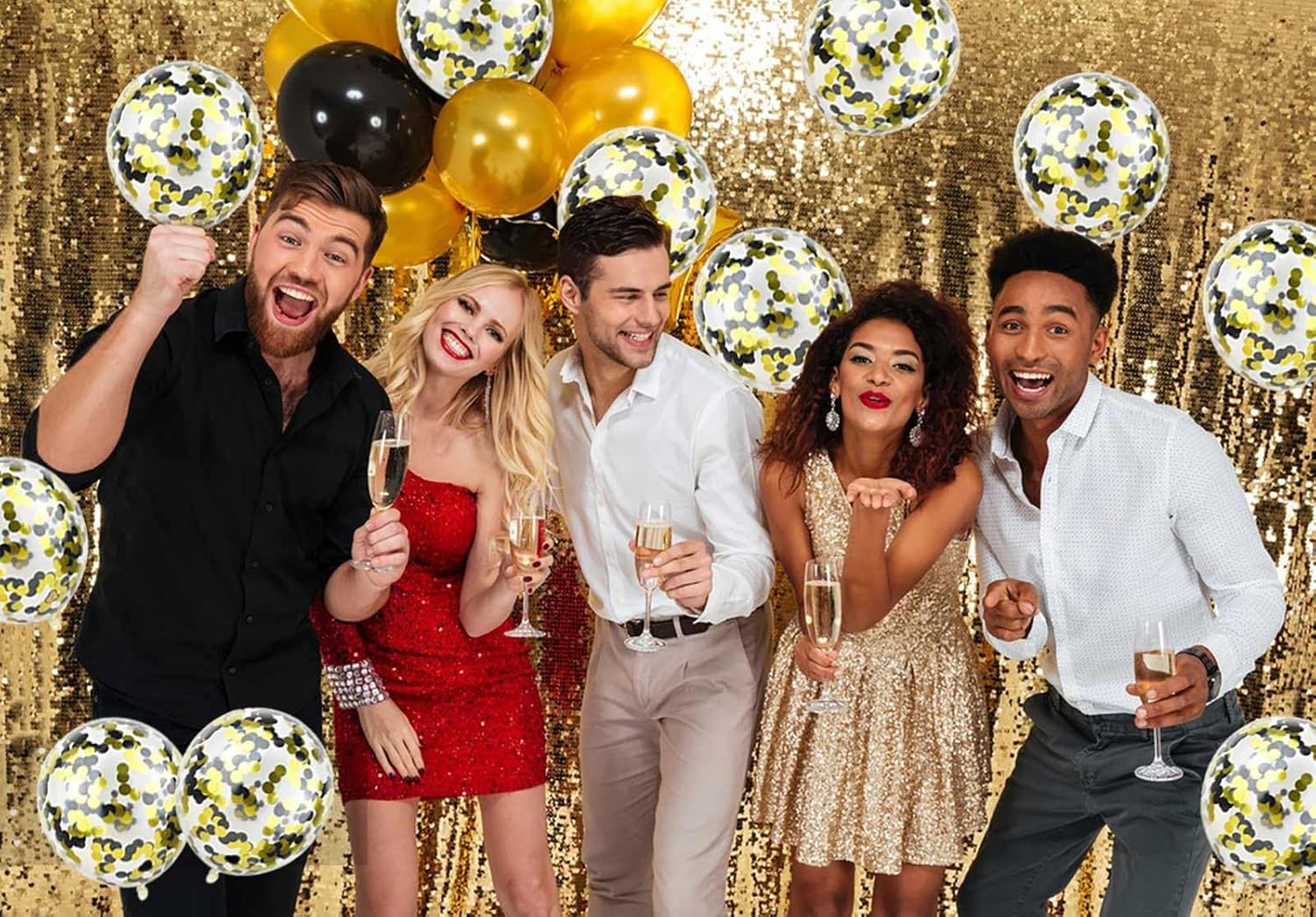 - YOU WILL GET: The Gold Black balloons set including 50 pcs confetti party balloons. all of them filled with Gold Blacken paper confetti dots already put in the transparement latex balloons. they can both hold helium and air. perfect for decoration any party.