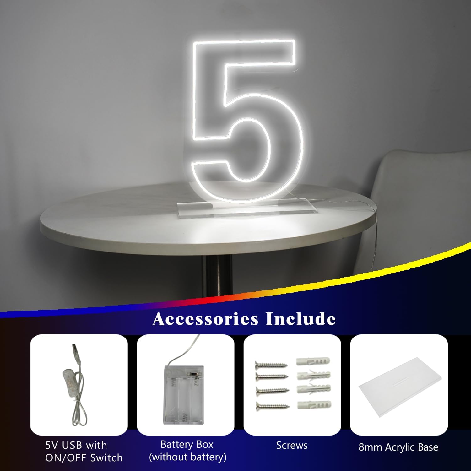 - 【Excellent Products and Service】Pack list:1 x number neon sign, 1x battery box , 1x acrylic base, screws. For any detailed information about the product, you can consult customer service. Our customer service team will be happy to assist you with any questions.