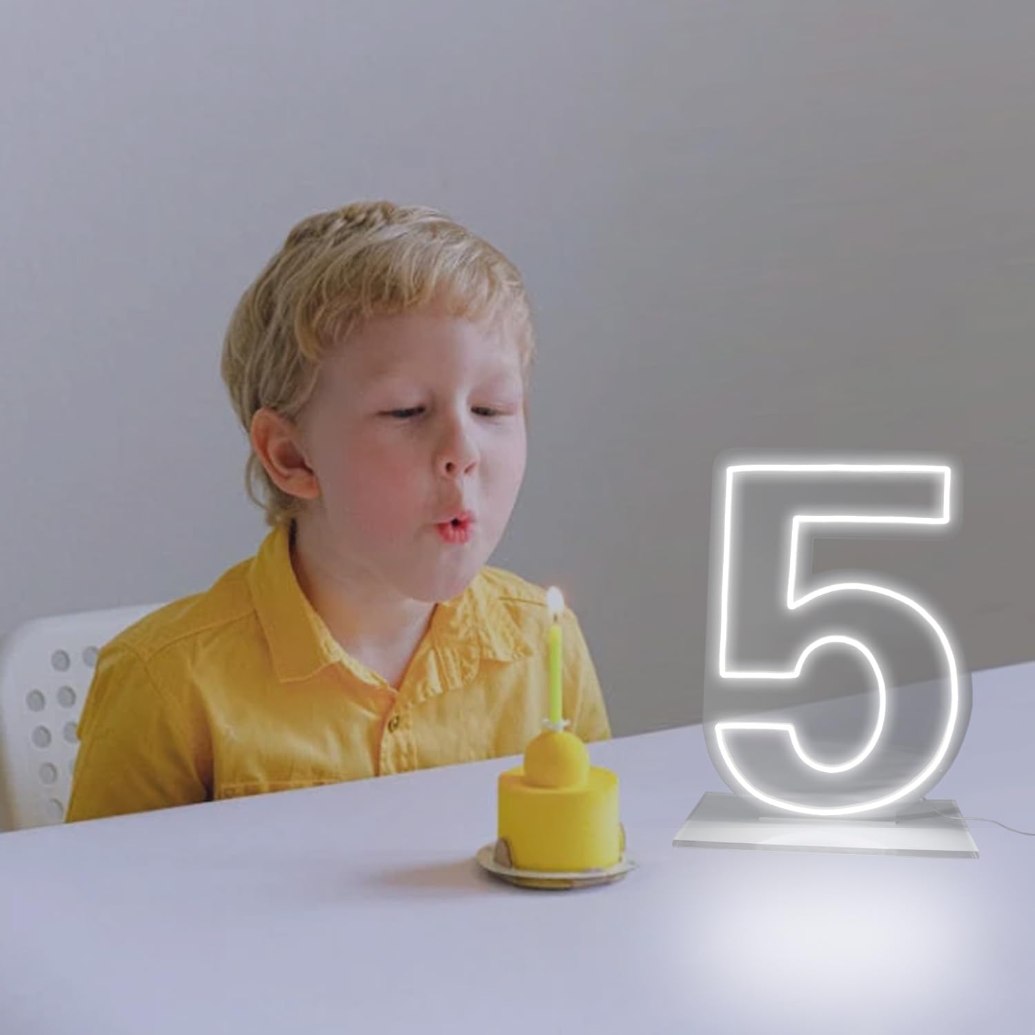 - 【Number Five Light Up Sign】Size: 11.9 x 16.54 inches. Cool white Color, Bright but not dazzling, makes it a good addition to your birthday party, wedding, kid's room, home, business or special events.