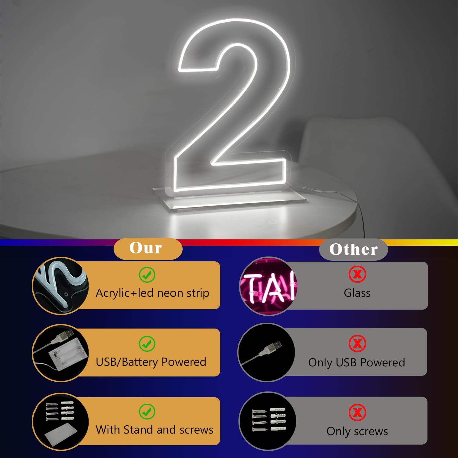 - 【Excellent Products and Service】Pack list:1 x number neon sign, 1x battery box , 1x acrylic base, screws. For any detailed information about the product, you can consult customer service. Our customer service team will be happy to assist you with any questions.