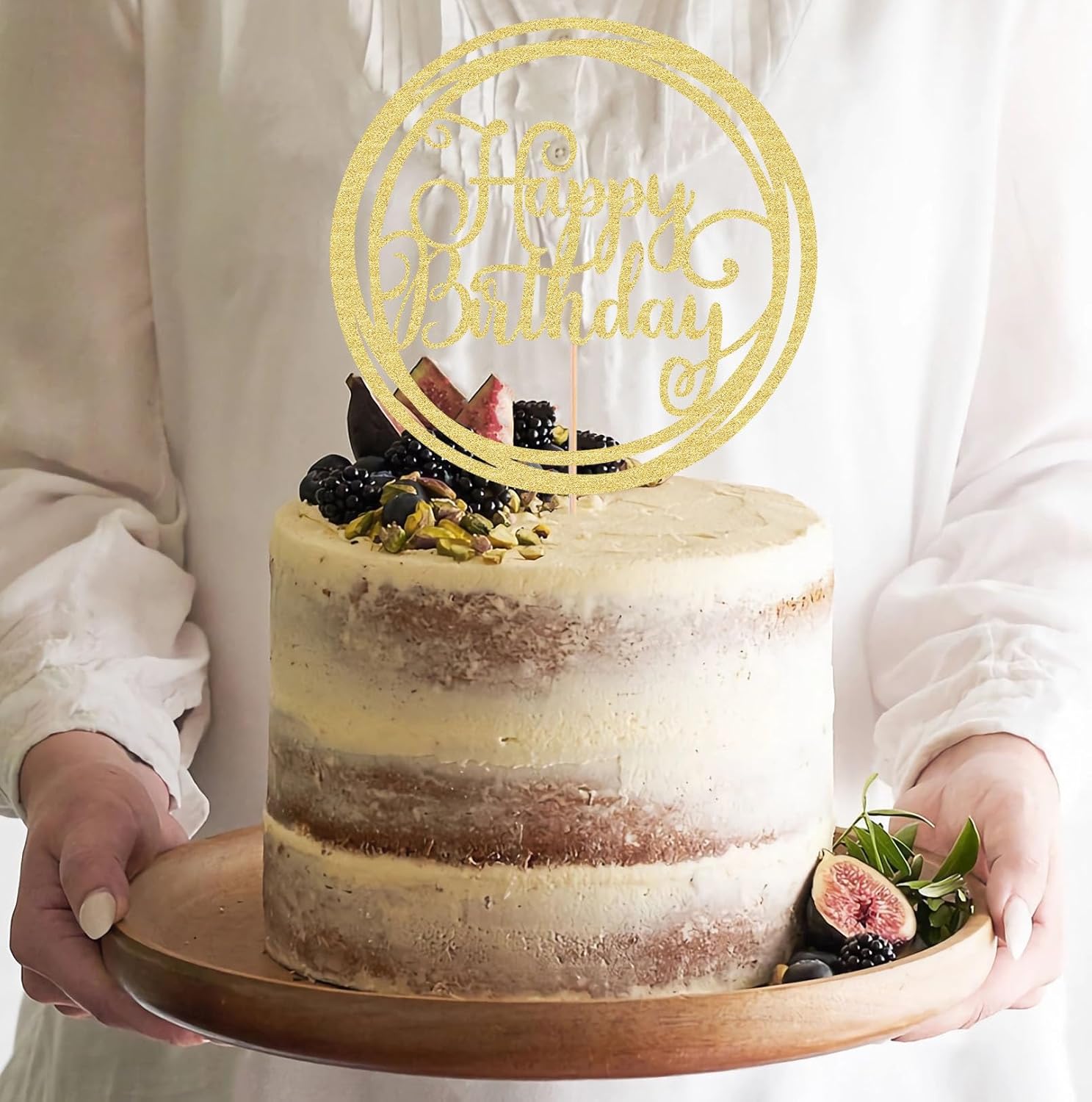 - HIGH QUALITY MATERIALS - This happy birthday birthday cake topper features a golden flash that shines from every angle. Made of 350 gram Glitter card stock and 100% food grade bamboo stick, pre installed in advance, is protected by thick cardboard, not easy to deform and fade. This happy birthday sign cake decoration will make your birthday party or anniversary shine brightly