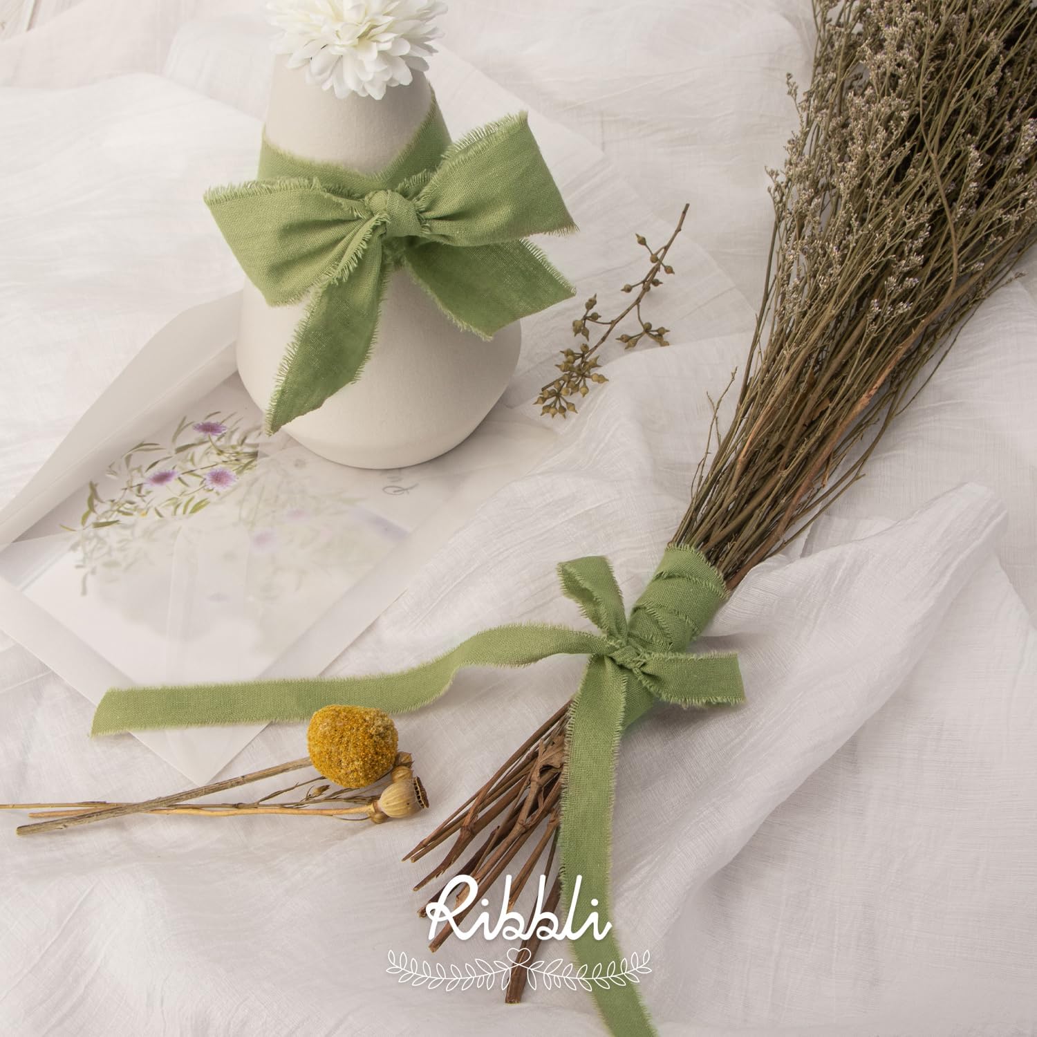 Ribbli 3 Rolls Sage Green Ribbon 5/8 Inch x 18Yards Handmade Cotton Frayed Fringe Ribbons for Gift Wrapping Wedding Invites Bridal Bouquets Baby Shower DIY Crafts Home Decor