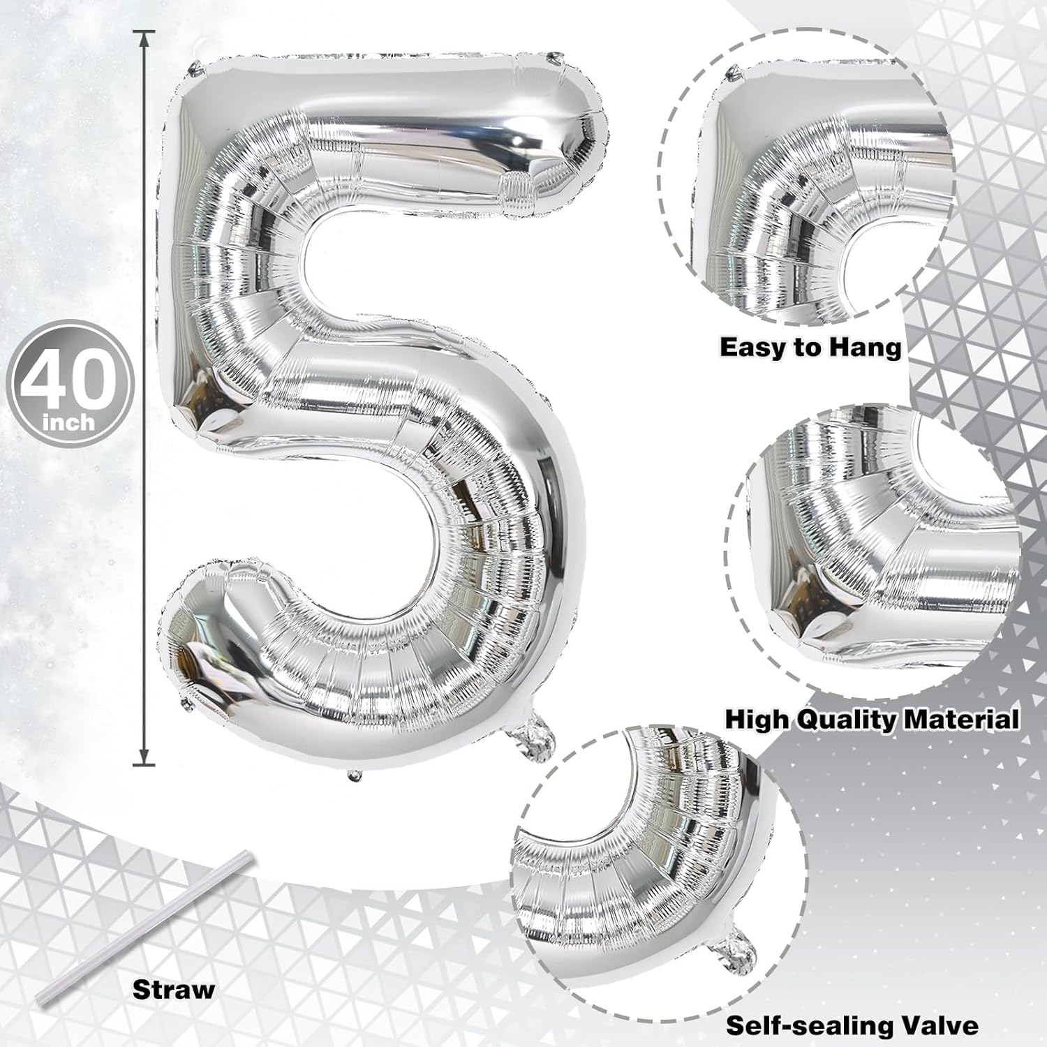 - π Silver Number 15 Balloon: Our package included 40 inch number 1 & 5 balloon and 1pcs straw. Simply inflate the balloon using the straw, and you're ready to party! Silver number foil balloons are the best for girls or boys birthday party decoration.