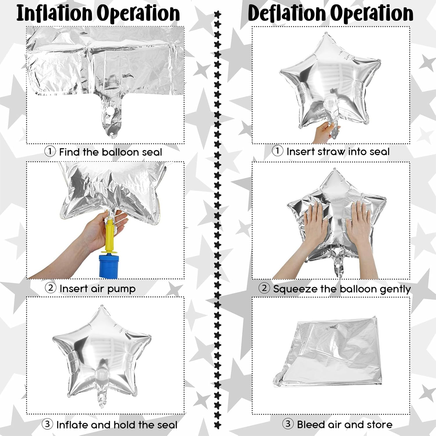 - Premium Aluminum Film Material: The black foil balloons are made of premium quality polyester aluminum film. The star balloons can be filled with air or helium. Suitable for both adults and children