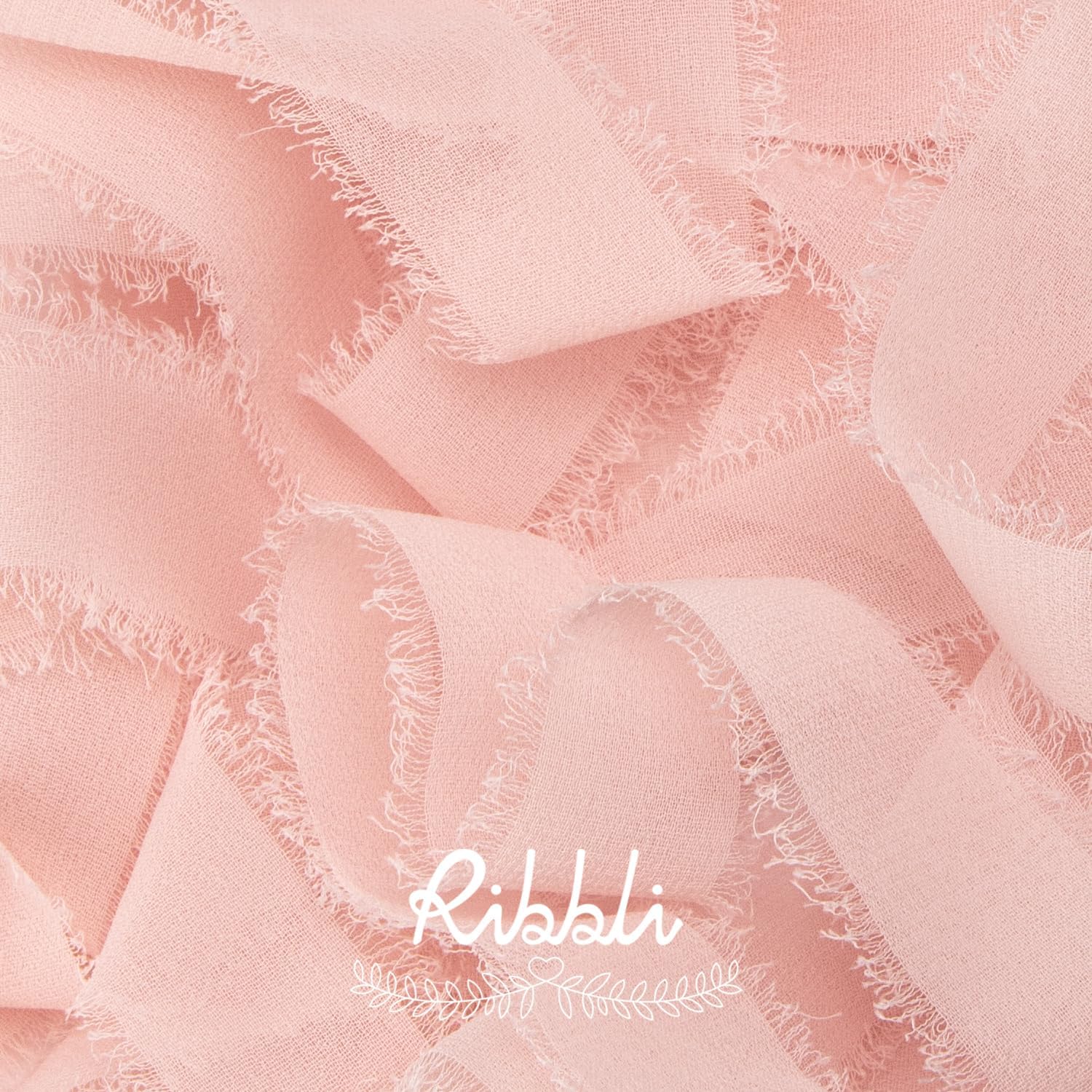 Ribbli Blush Pink Ribbon 1 Inch x 3 Rolls Total 24 Yards Pink Handmade Fringe Chiffon Silk Ribbon for Wrapping Wedding Invitations Bridal Bouquets DIY Crafts Home Decor