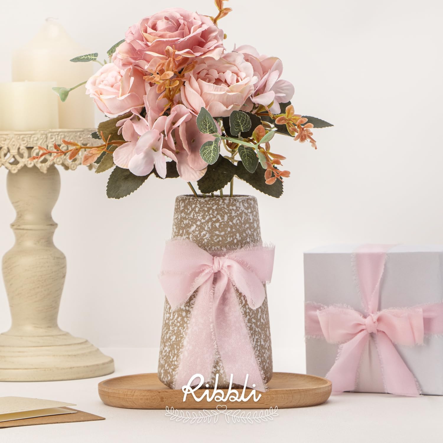 Ribbli Pale Blush Ribbon 1 Inch x 3 Rolls Total 24 Yards Light Pink Handmade Fringe Chiffon Silk Ribbon for Wrapping Wedding Invitations Bridal Bouquets DIY Crafts Home Decor