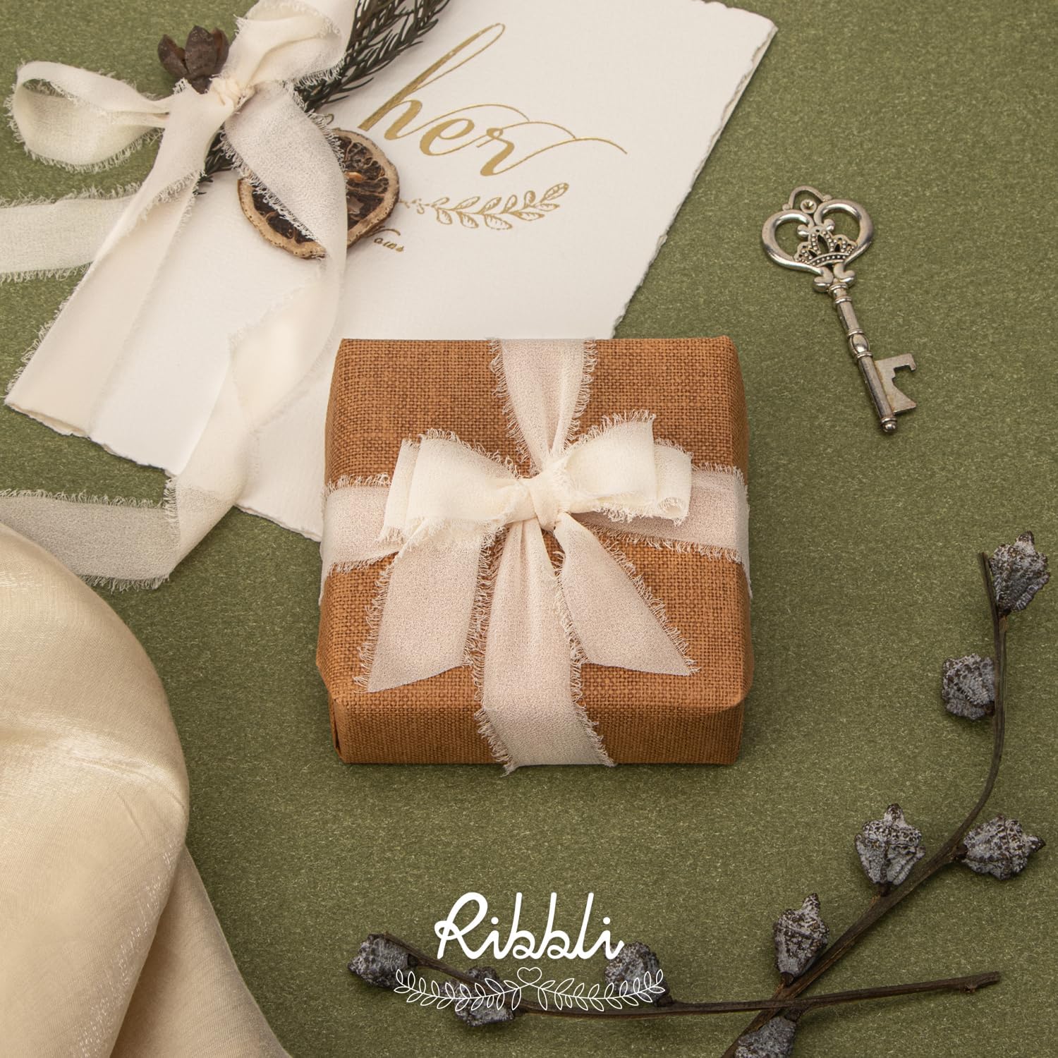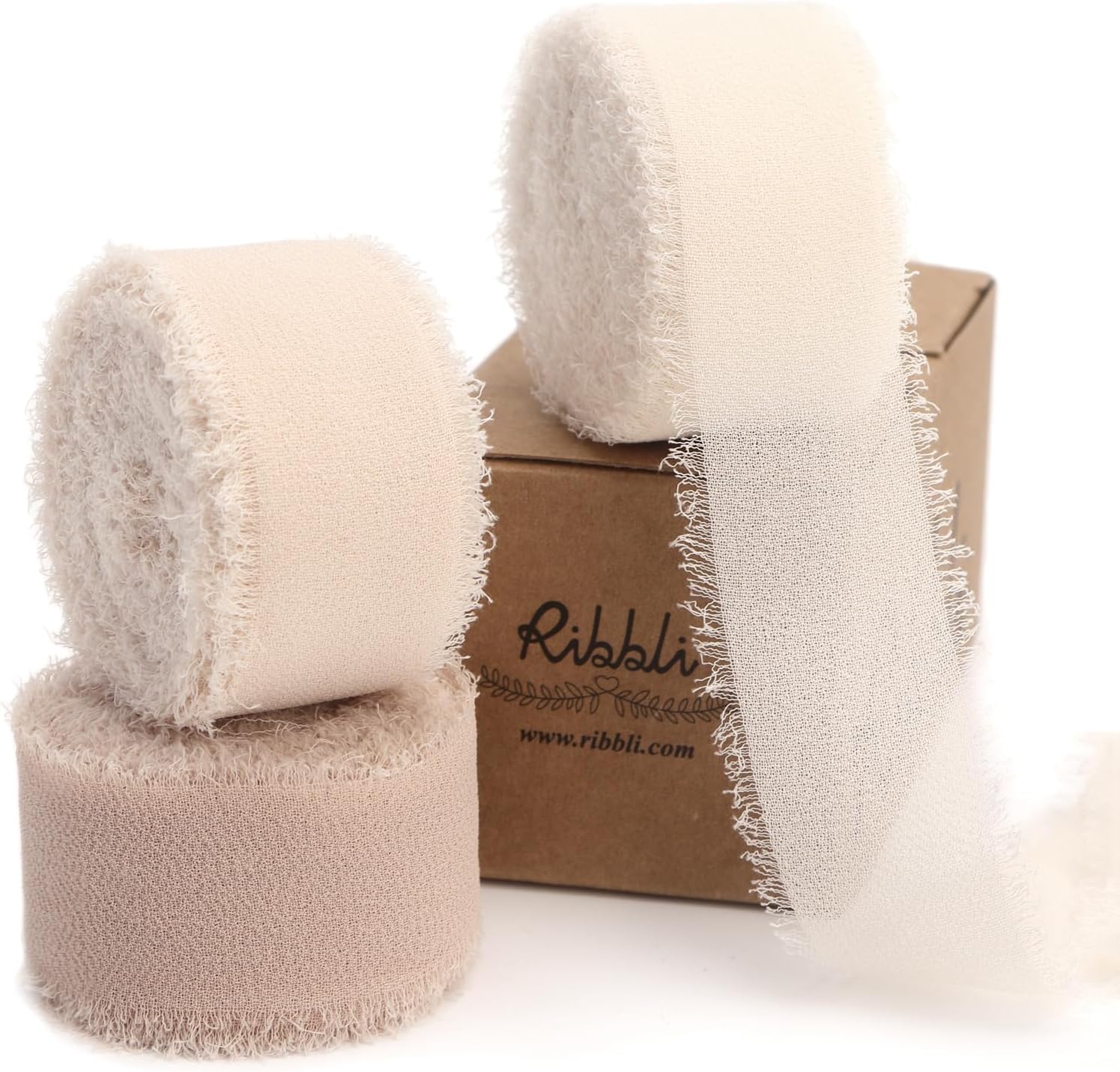 Ribbli Nude Ribbon 1 Inch x 3 Rolls Total 24 Yards Cream/Nude/Beige Handmade Fringe Chiffon Silk Ribbon for Wrapping Wedding Invitations Bridal Bouquets DIY Crafts Home Decor