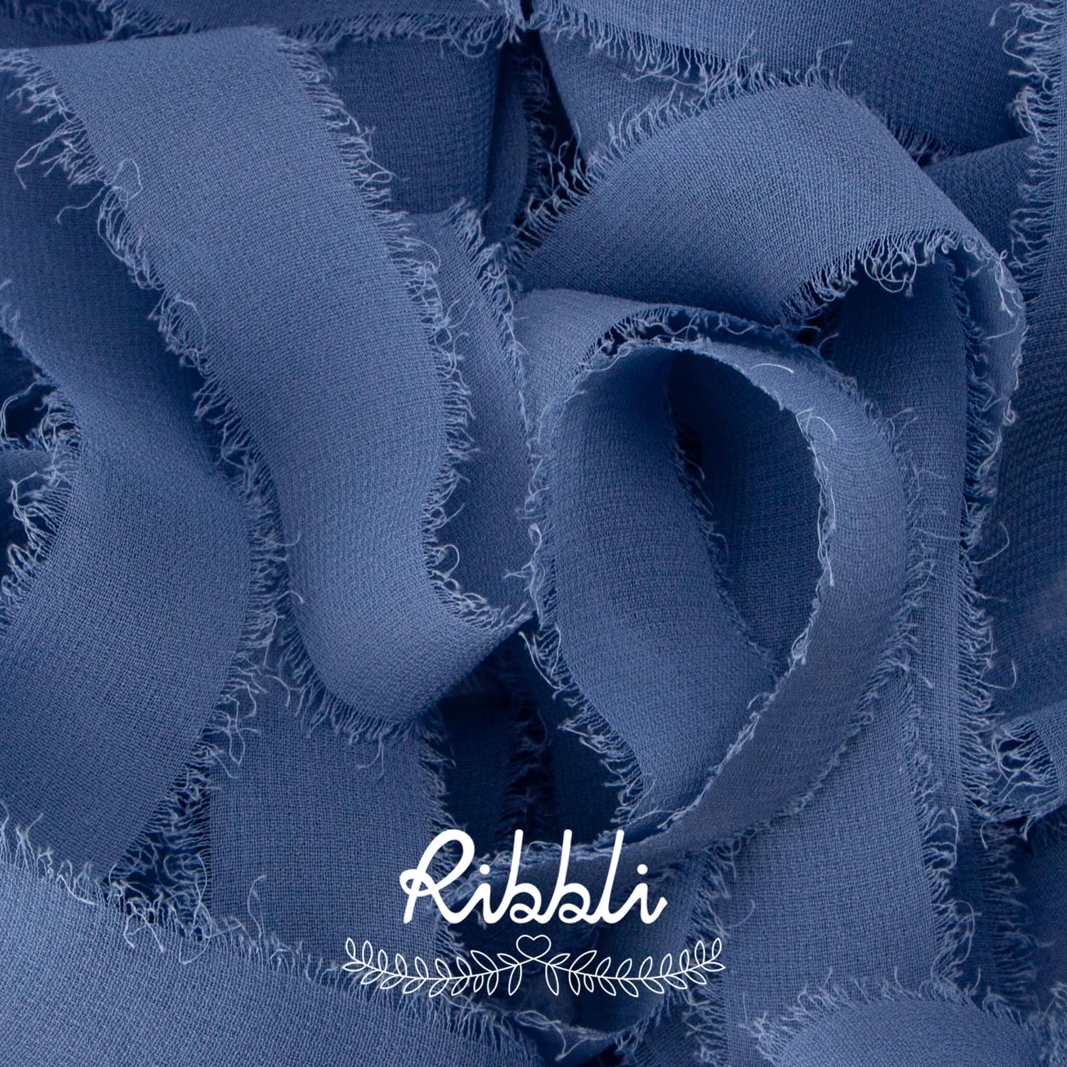 Ribbli Dusty Blue Ribbon 1 Inch x 3 Rolls Total 24 Yards Blue Handmade Fringe Chiffon Silk Ribbon for Wrapping Wedding Invitations Bridal Bouquets DIY Crafts Home Decor