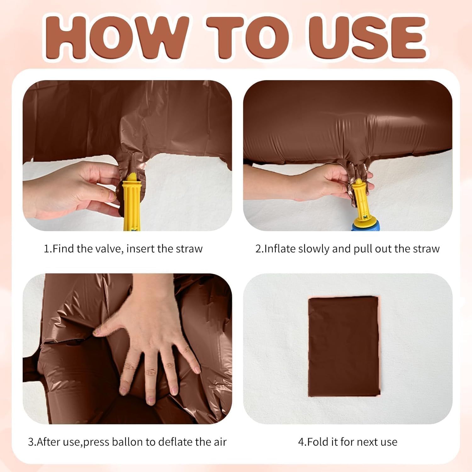 - Easy To Use:These cream heart foil balloons are suitable for helium or air. Easy to inflate using the a straw or an air handheld pump. This heart foil balloon adopts self-sealing design, you only need to press the inflation port to seal it after finishing inflate. The balloons are reusable and can be folded up for next use after being deflated with a straw.
