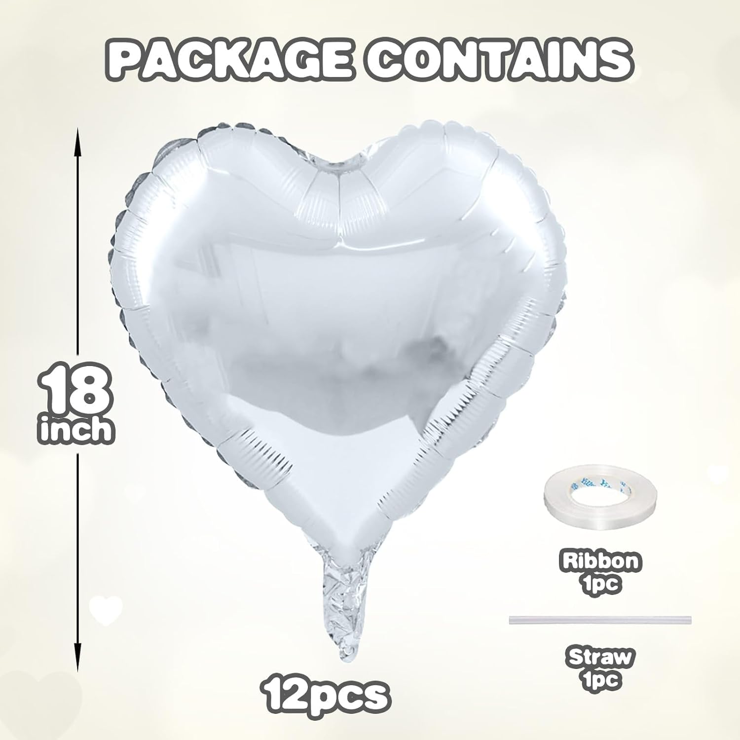 - Silver Heart Balloons:This 18 inches heart shaped balloons includes 12* silver heart balloons,1* silver ribbon, 1*straw, adding romance and warmth to your celebration. These large heart balloons will be the highlight of your party decorations, creating an atmosphere of love for everyone.